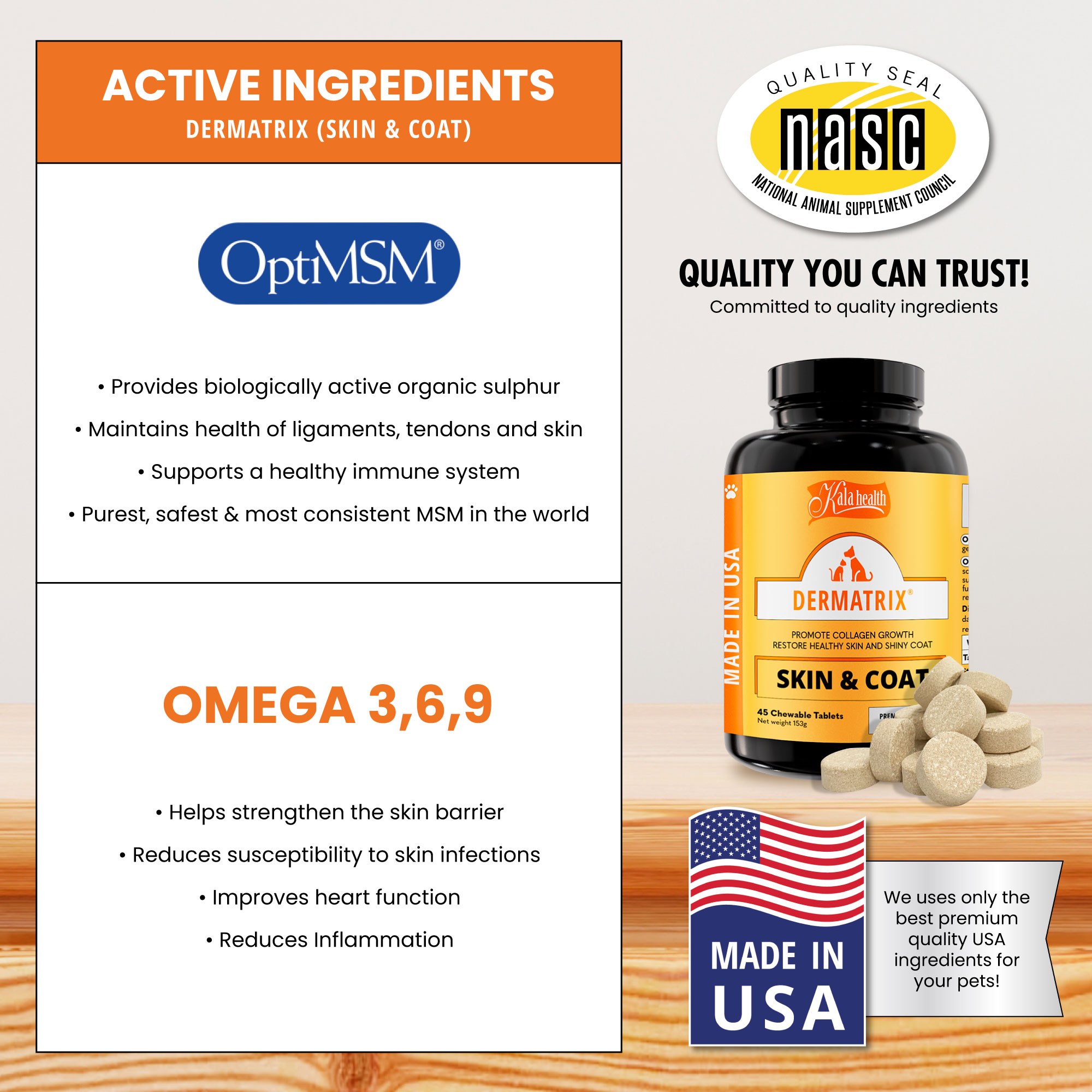 DERMATRIX® Chewable Tablets are a complete all-in-one skin and coat supplement for dogs and cats.