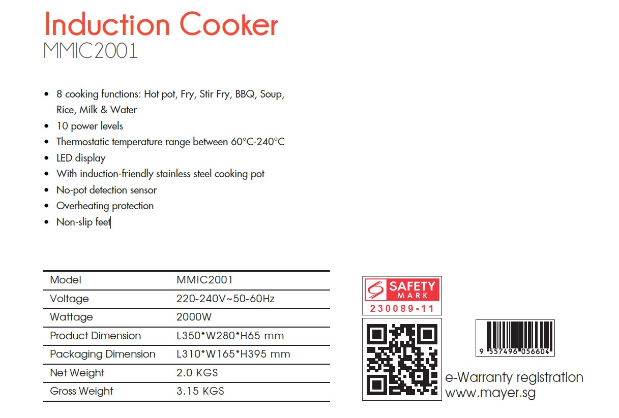 Looking for an affordable induction cooker for the next hotpot gathering or boiling soup for the family? Mayer induction cooker MMIC2001 has 10 levels of temperature/power and 8 cooking functions to choose from. Comes with a FOC stainless steel pot. Get yours now to indulge in fast and energy-efficient cooking!