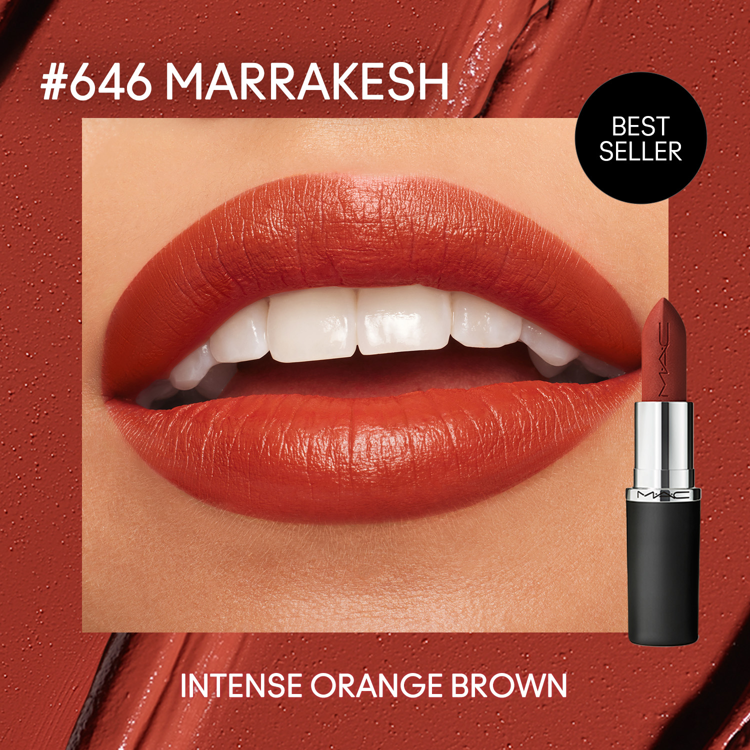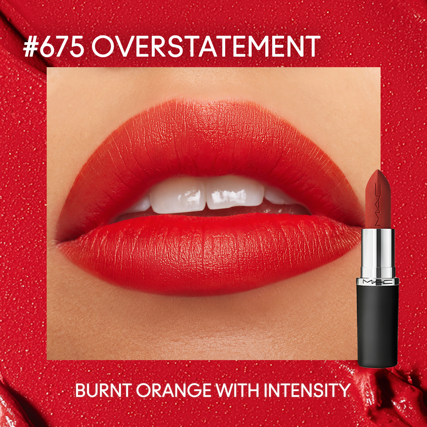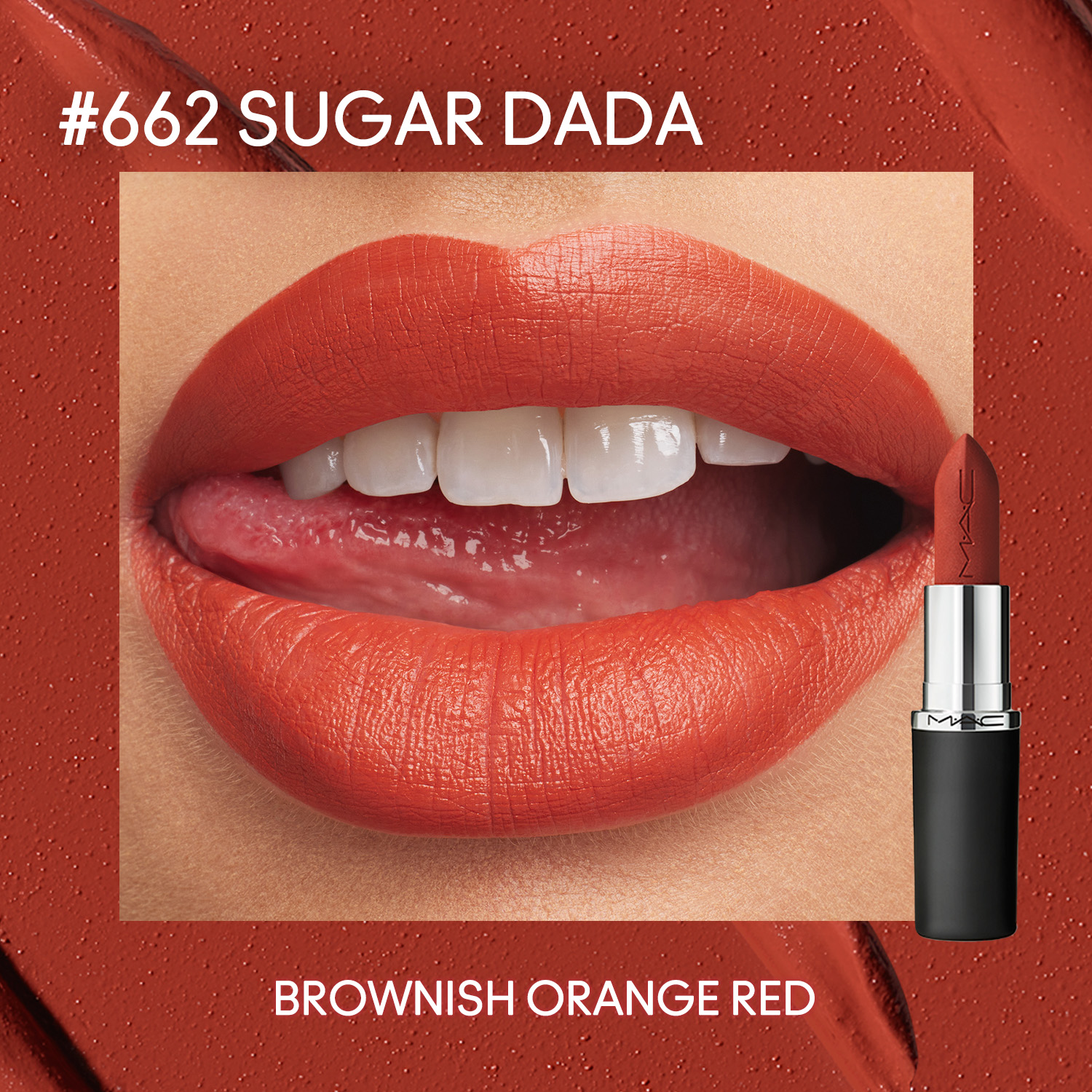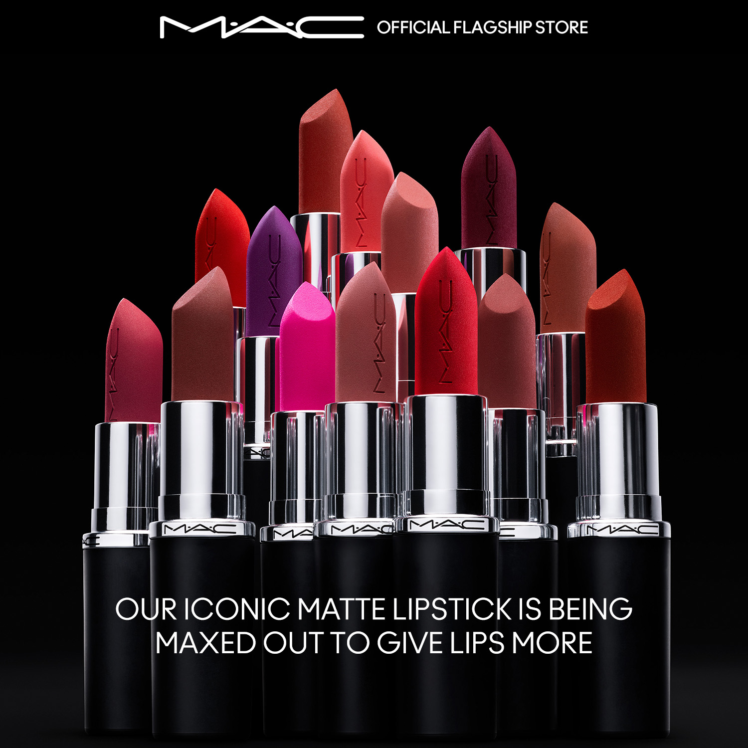Our iconic lipstick has been maxed out to give lips MORE with a silky matte finish and good-for-lips formula that looks richer, feels better and lasts longer. Get MORE COLOUR with full-coverage, pigment-rich payoff in our widest range of [40] Artist-appoved shades. Get MORE COMFORT with a creamy blend of coconut oil, organic shea butter and organic cocoa butter that conditions and nourishes lips. Get MORE CARE with instant and eight-hour moisture. Get MORE LONGWEAR with 12 hours of non-fading, long-lasting colour that leaves lips looking visibly fuller from the very first ultra-vibrant glide. Get a MORE LUXE look with a high-shine packaging design on the outside and M·A·C-embossed bullet on the inside. And finally, get MORE RESPONSIBLE with a lipstick case featuring at least 30% PCR material. The iconic matte Lipstick that changed the world we live in may have been reimagined, but each famous and fresh hue still serves up that signature vanilla scent you already love (or soon will…).