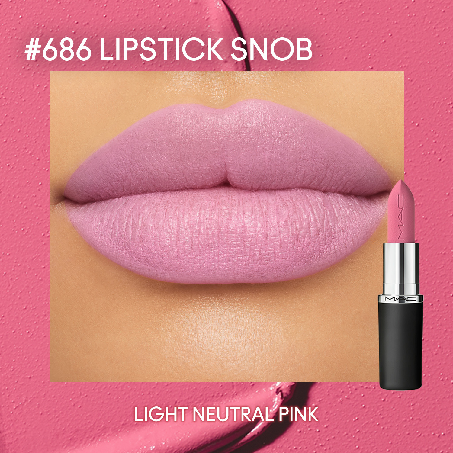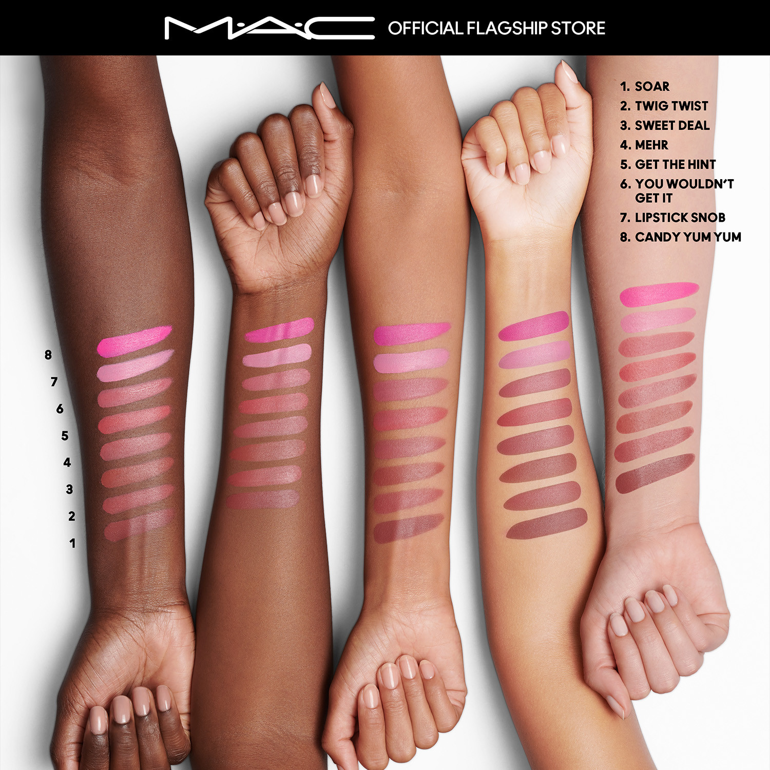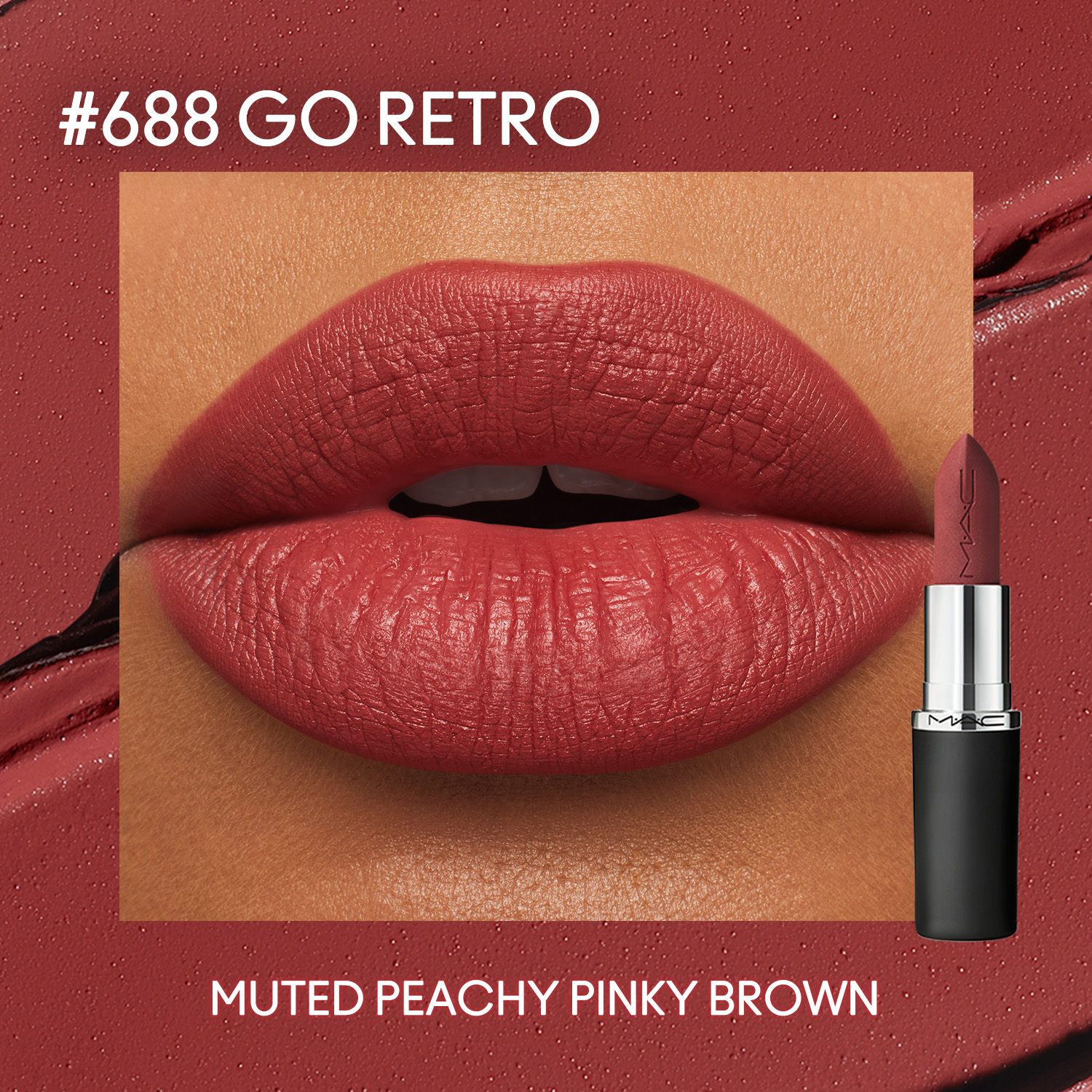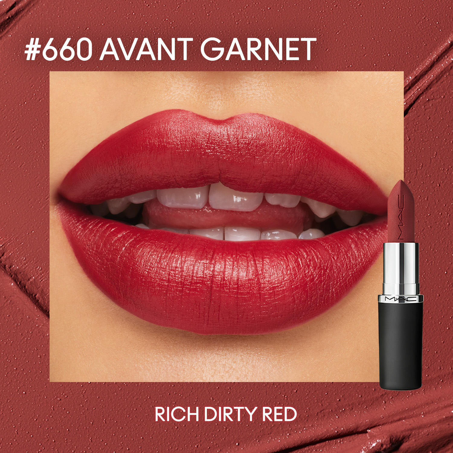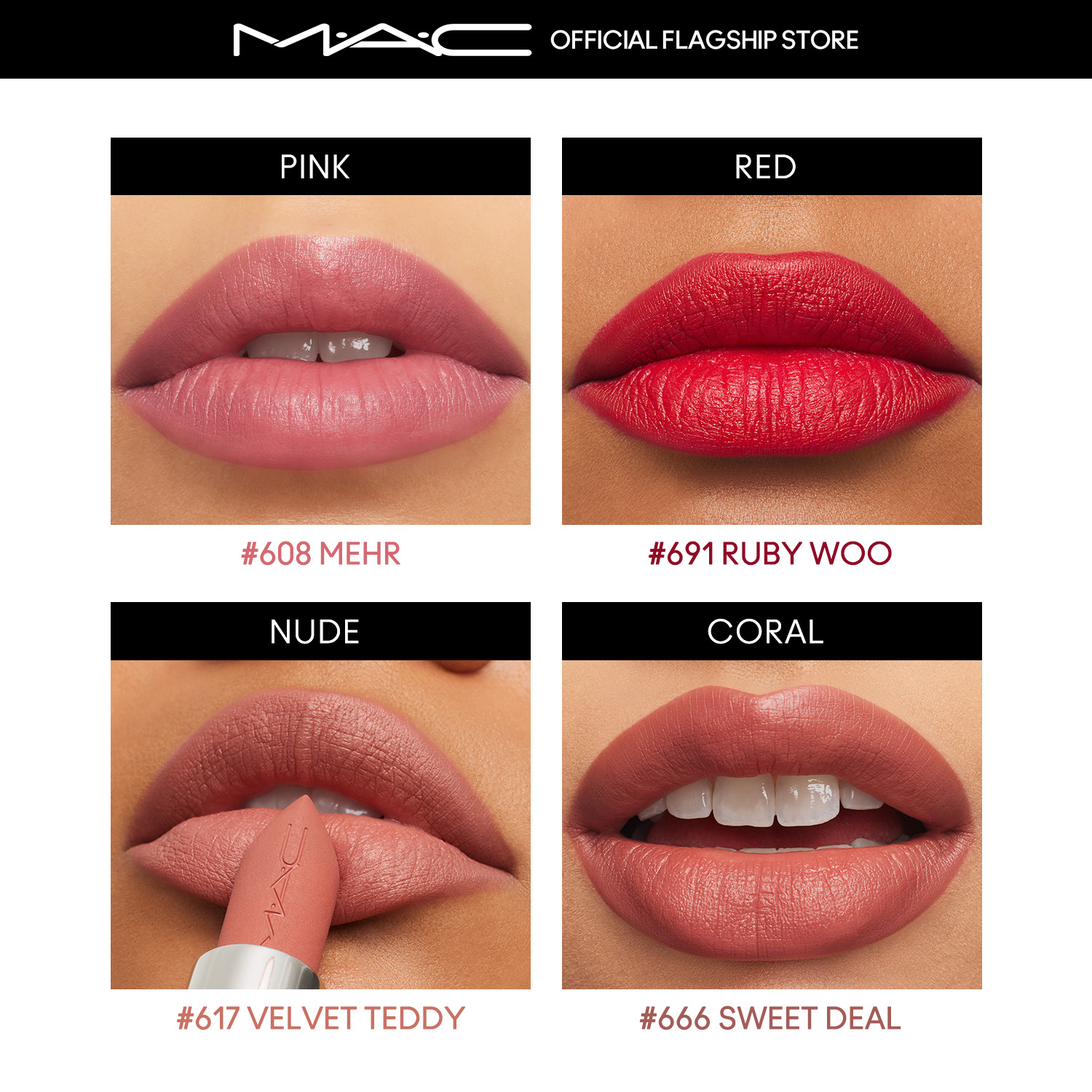 Our iconic lipstick has been maxed out to give lips MORE with a silky matte finish and good-for-lips formula that looks richer, feels better and lasts longer. Get MORE COLOUR with full-coverage, pigment-rich payoff in our widest range of [40] Artist-appoved shades. Get MORE COMFORT with a creamy blend of coconut oil, organic shea butter and organic cocoa butter that conditions and nourishes lips. Get MORE CARE with instant and eight-hour moisture. Get MORE LONGWEAR with 12 hours of non-fading, long-lasting colour that leaves lips looking visibly fuller from the very first ultra-vibrant glide. Get a MORE LUXE look with a high-shine packaging design on the outside and M·A·C-embossed bullet on the inside. And finally, get MORE RESPONSIBLE with a lipstick case featuring at least 30% PCR material. The iconic matte Lipstick that changed the world we live in may have been reimagined, but each famous and fresh hue still serves up that signature vanilla scent you already love (or soon will…).