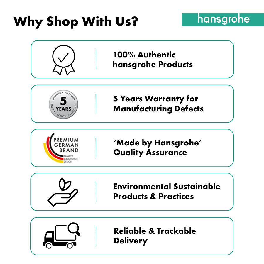 For quality assurance, Hansgrohe provides a 5 years warranty for manufacturing defects, which only applies to