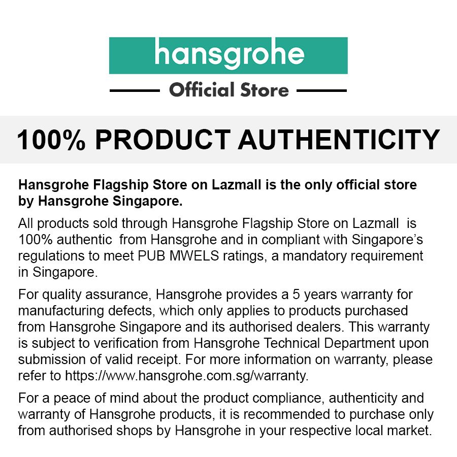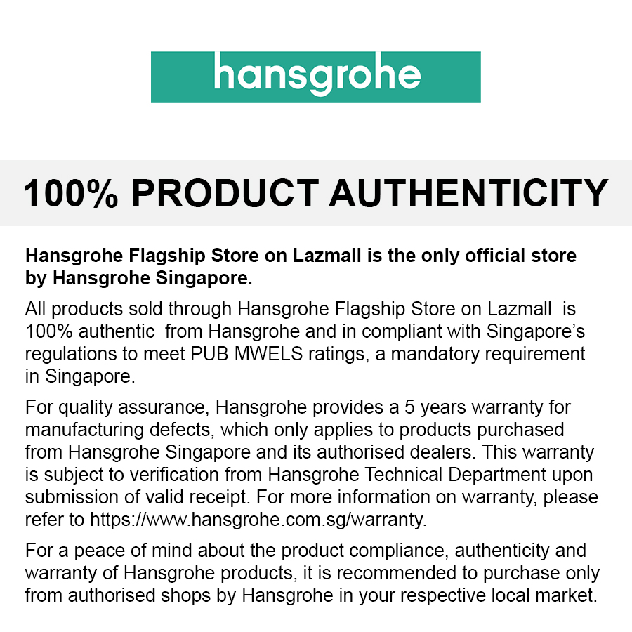 All products sold through Hansgrohe Flagship Store on LazMall is 100% authentic from Hansgrohe and in