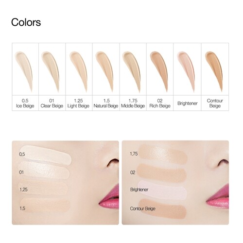 Feature Soft Focus Powder that is similar to skin curve rate covers blemish of skin naturally. Long lasting polymer remains clean skin for hours. Moisturizing texture adheres to skin naturally to create transparent skin. SPF28/PA++ Color Option #0.5 Ice Beige #01 Clear Beige #1.5 Natural Beige #1.75 Middle Beige #02 Rich Beige #Contour Beige #Brightener