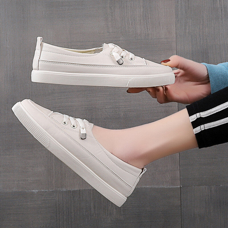 Women's Thin Low Vamp White Slip-on Casual Shoes for Summer