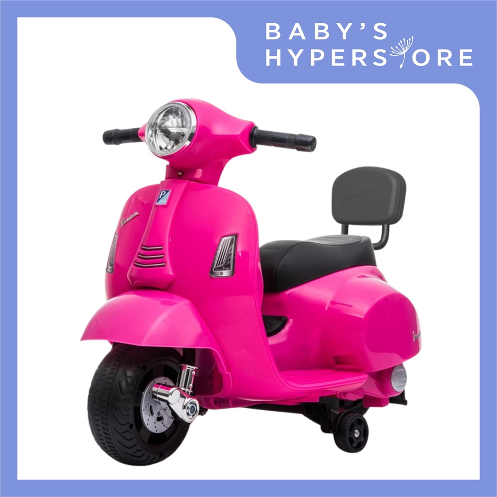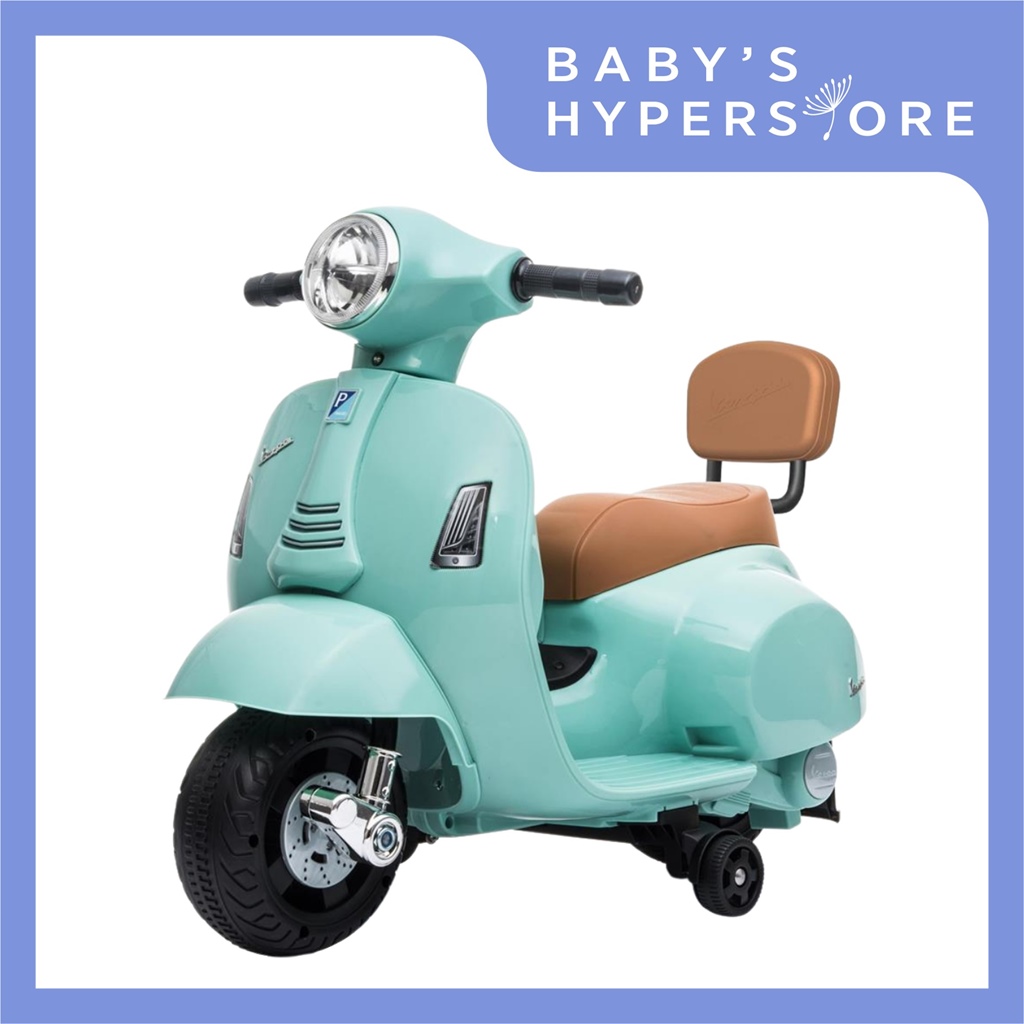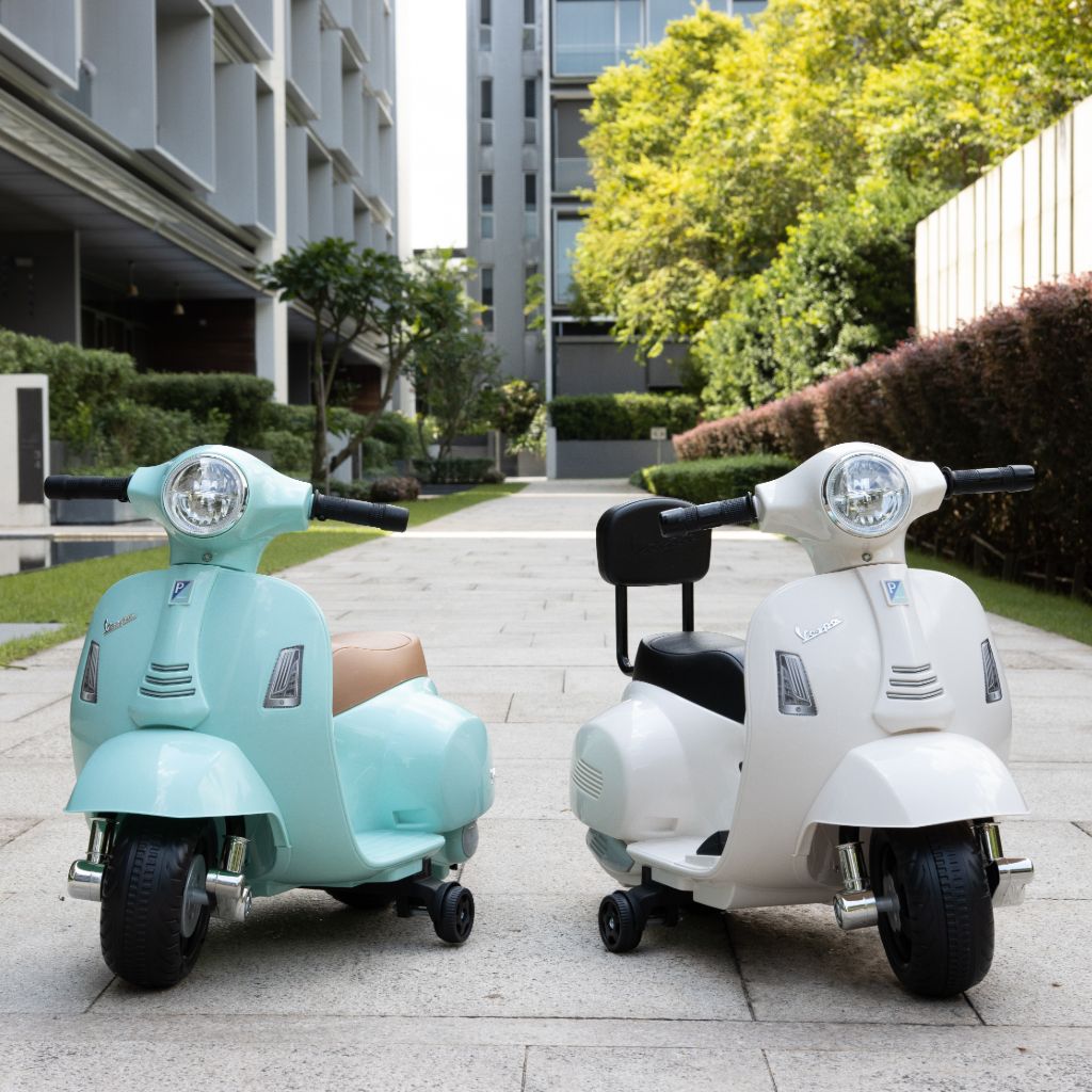 Vespa Mini Electric Ride-On Scooter is an officially licensed children electric ride that takes after the Vespa GTS in the scale 1:5. While providing an exciting riding journey for your kid from 18 months old to about 3 years old, it ensures that your kid is safe with it's thoughtful features like the presence of a backrest, anti-tip safety guard and most importantly a safe speed limit.