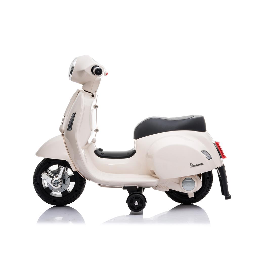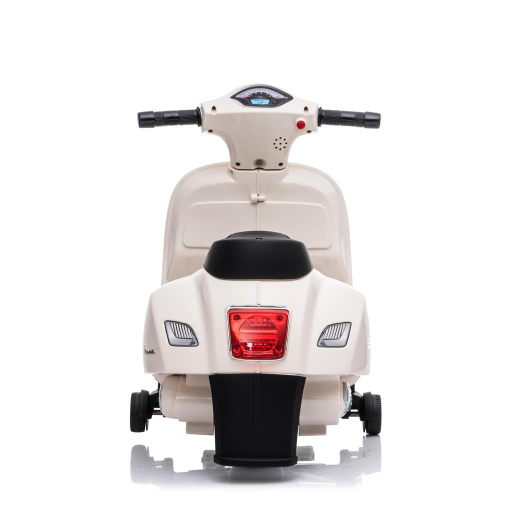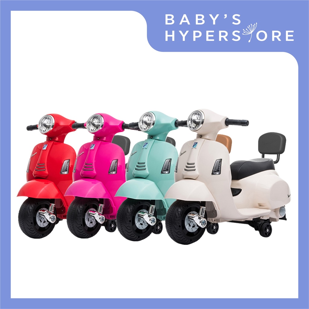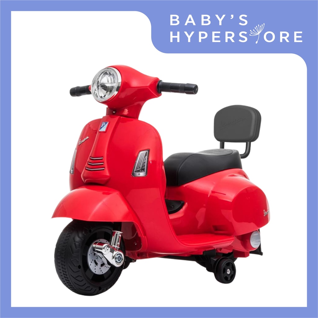 Vespa Mini Electric Ride-On Scooter is an officially licensed children electric ride that takes after the Vespa GTS in the scale 1:5. While providing an exciting riding journey for your kid from 18 months old to about 3 years old, it ensures that your kid is safe with it's thoughtful features like the presence of a backrest, anti-tip safety guard and most importantly a safe speed limit.