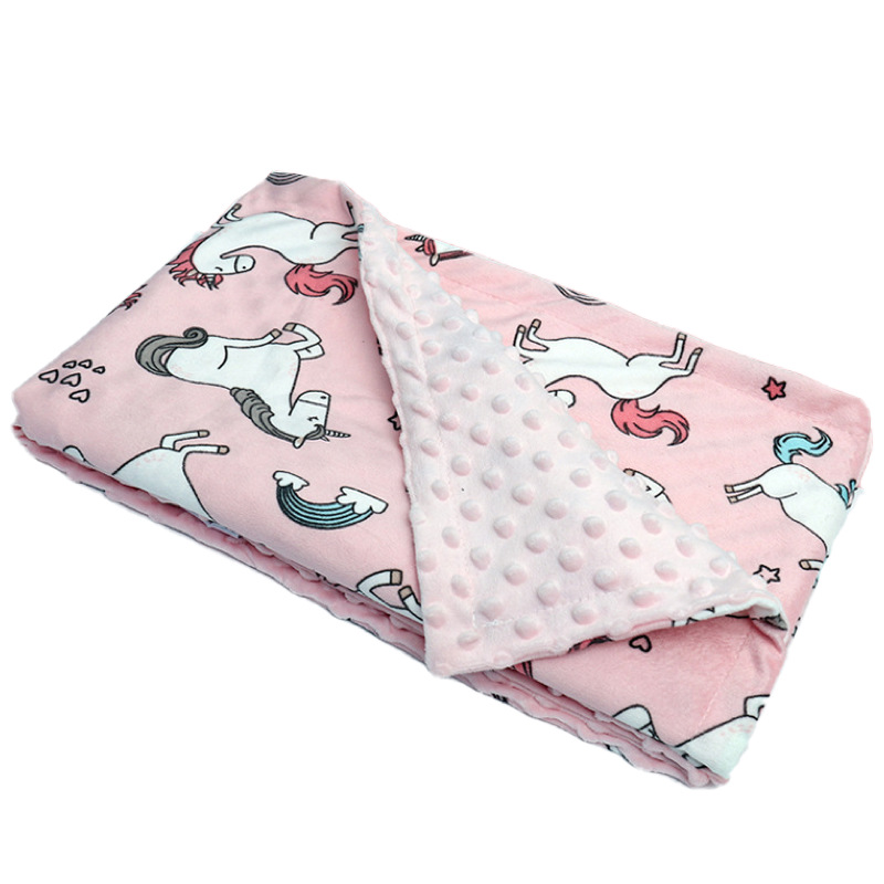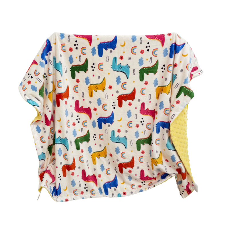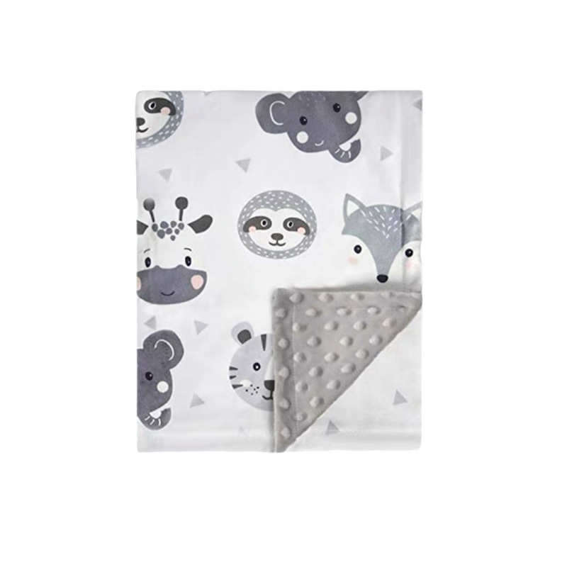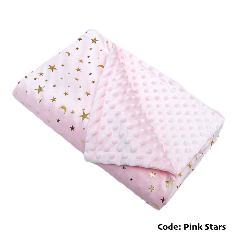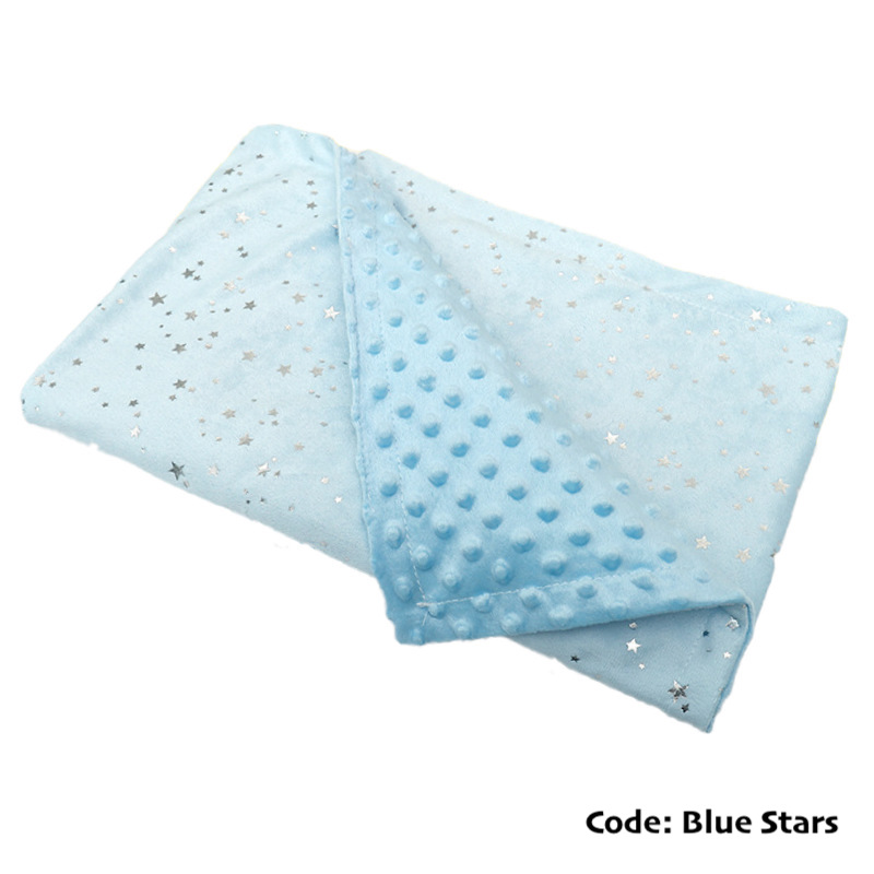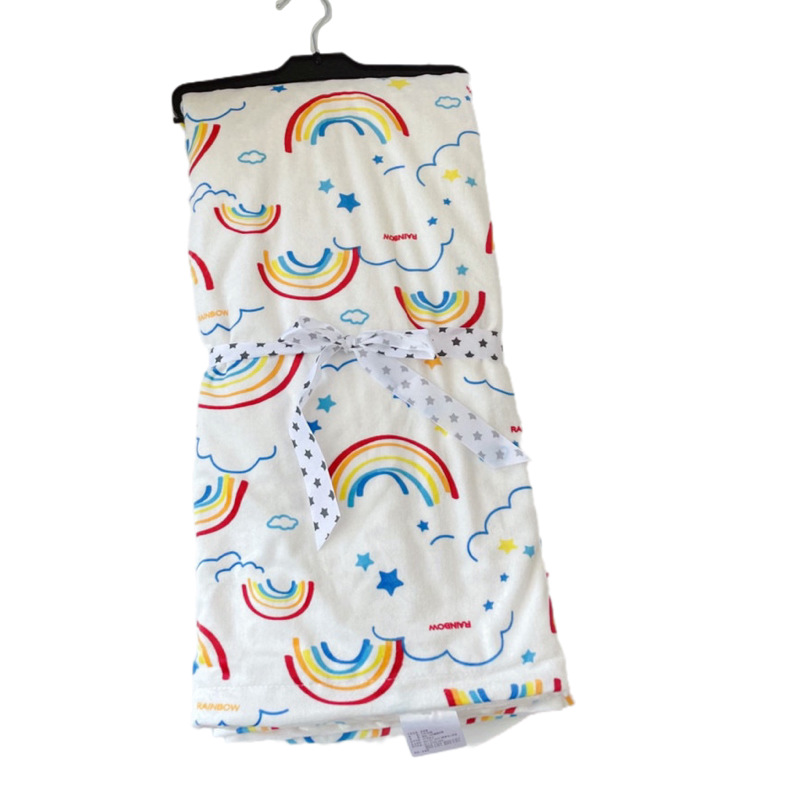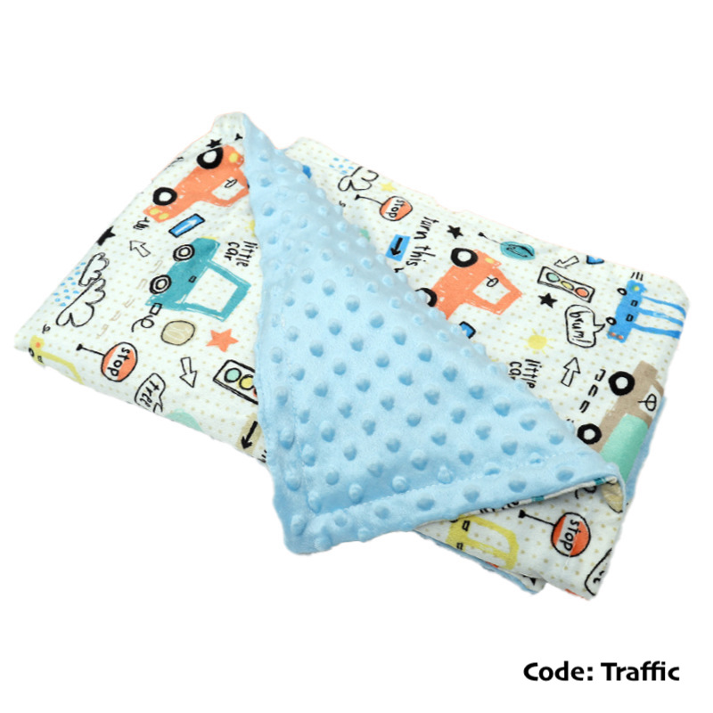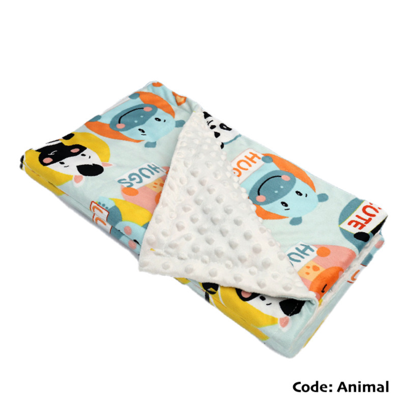 Soft texture that is comfortable Size: 75 x 120cm / 110 x 150cm One side dotted design (makes baby feel comfortable and safe when the blanket is covering them) Made of polyester Suitable to use in air conditioned environment Long lasting materials Washing machine friendly