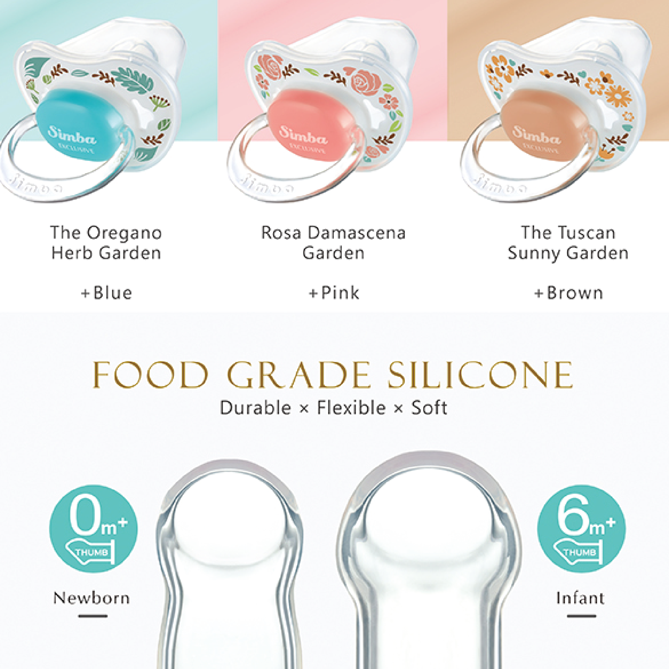 Simba Crystal Romance Pacifier Ergonomic thumb shaped pacifier that is designed for baby’s natural jaw and teeth shape. Groove design prevents saliva adhesion between lips and pacifier. Its smile curve design with round edges gives baby the ultimate comfort. Hygienic case included. BPA-free and SGS-certified material.