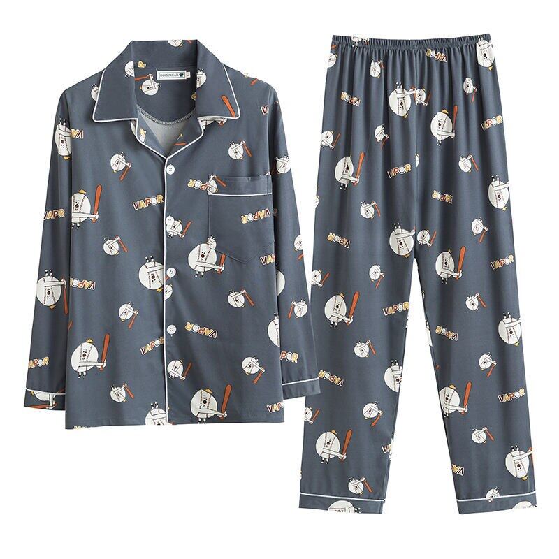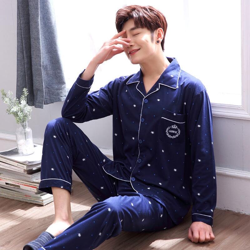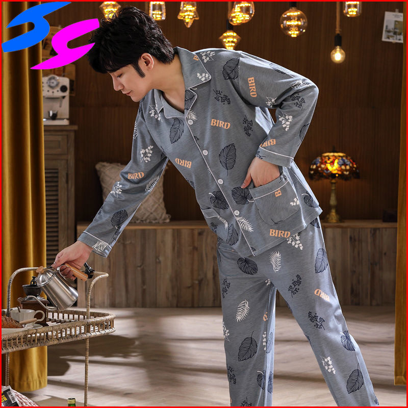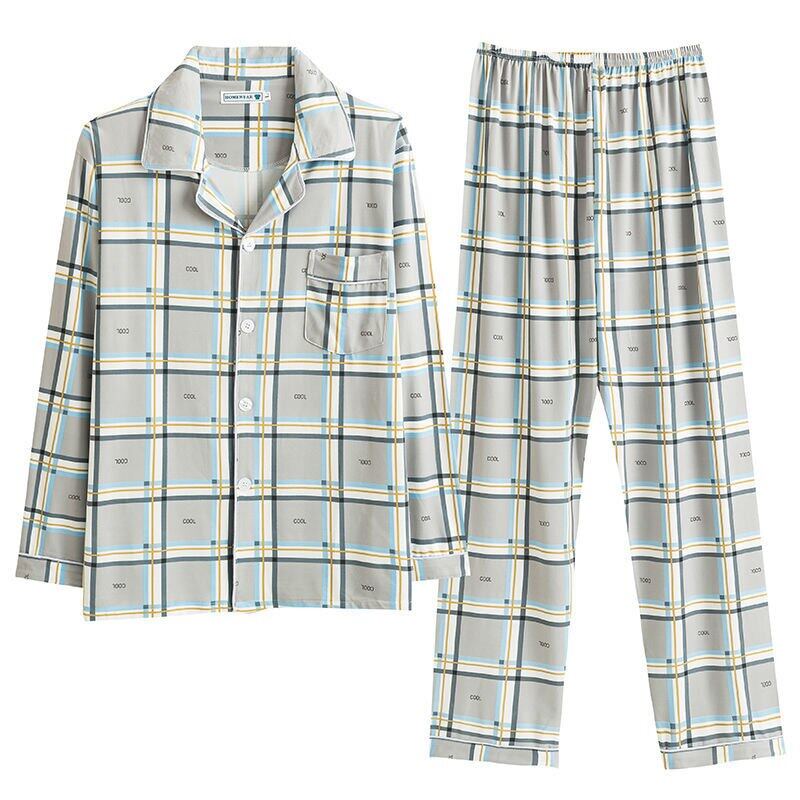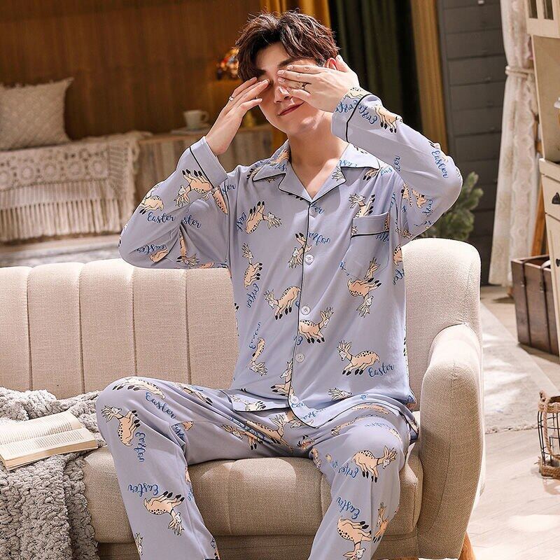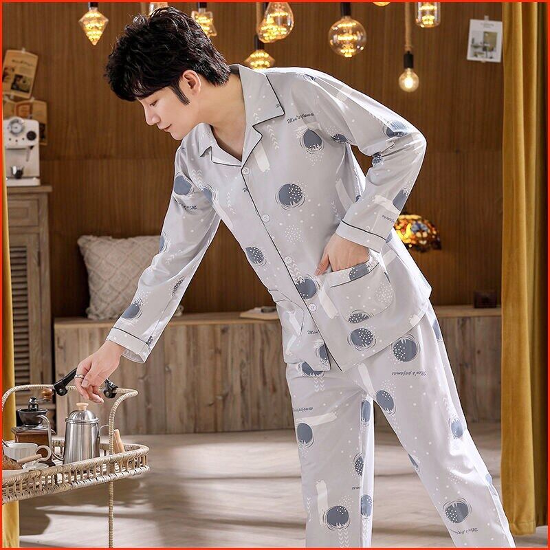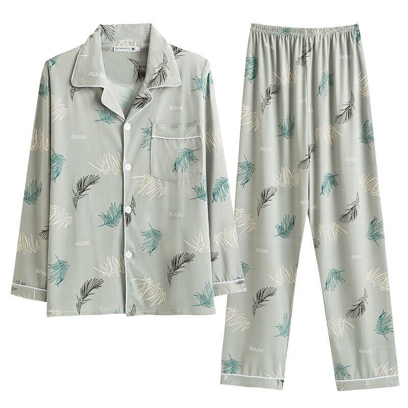 Men's Pajama Sets Spring Summer Man Pajamas Set Simple Sleepwear long Sleeve Printed Pajamas For Men Top Pant Casual Outwear