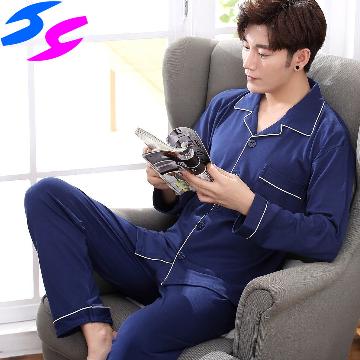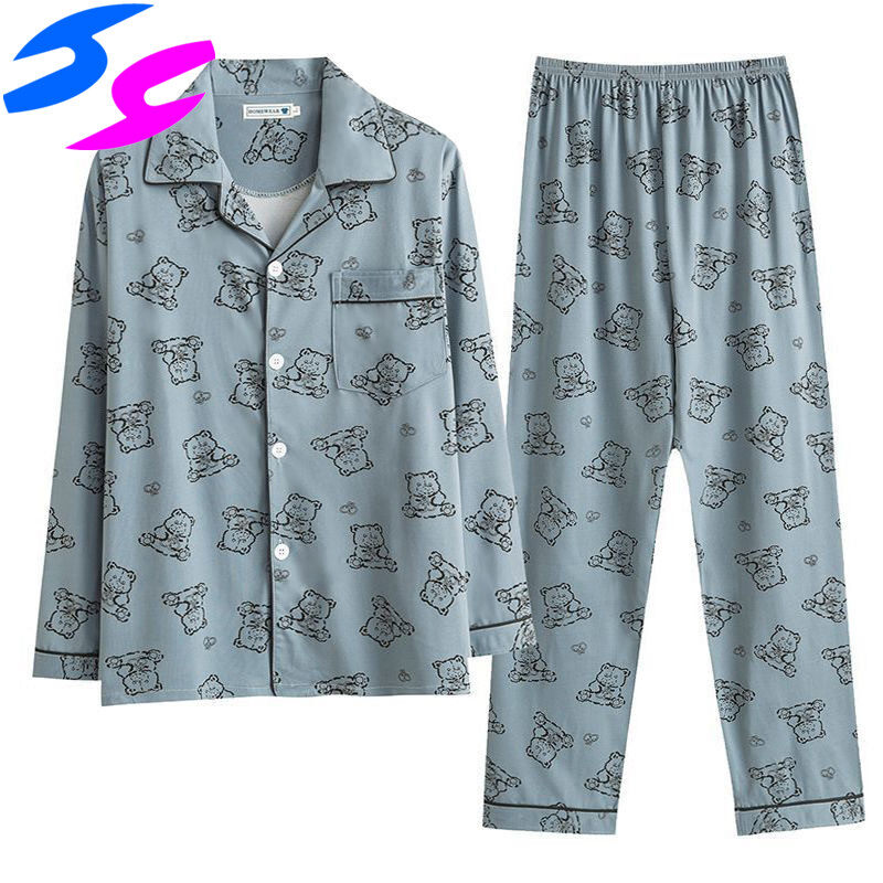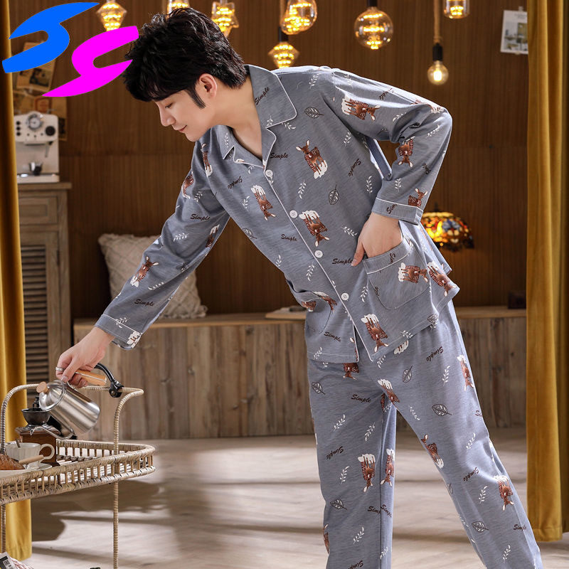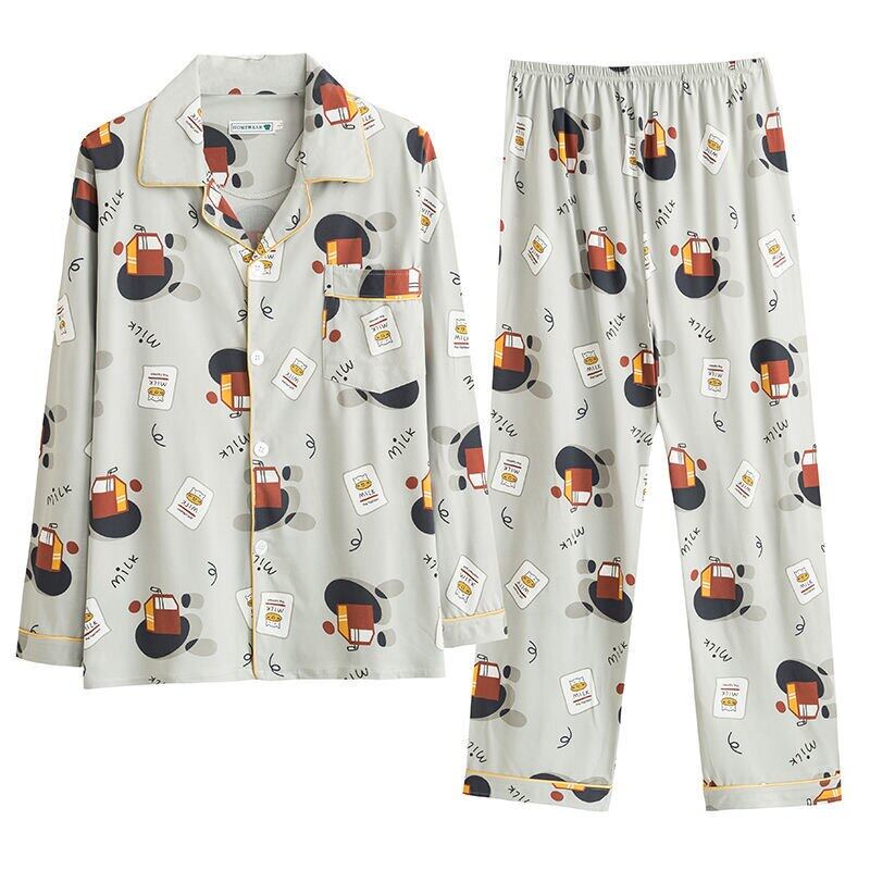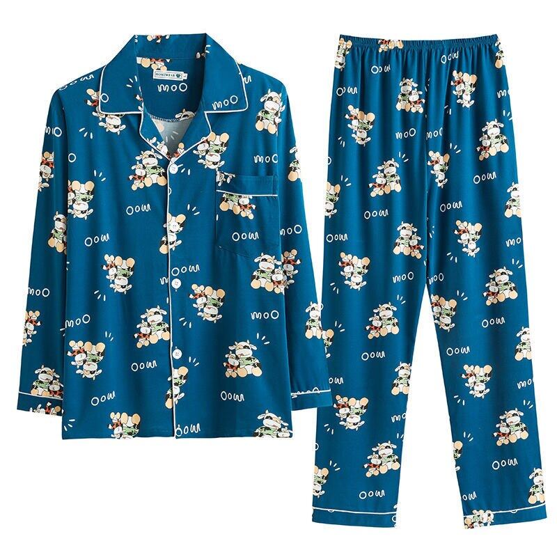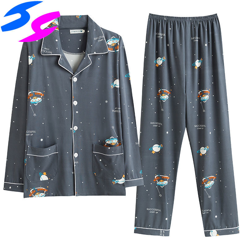 Men's Pajama Sets Spring Summer Man Pajamas Set Simple Sleepwear long Sleeve Printed Pajamas For Men Top Pant Casual Outwear