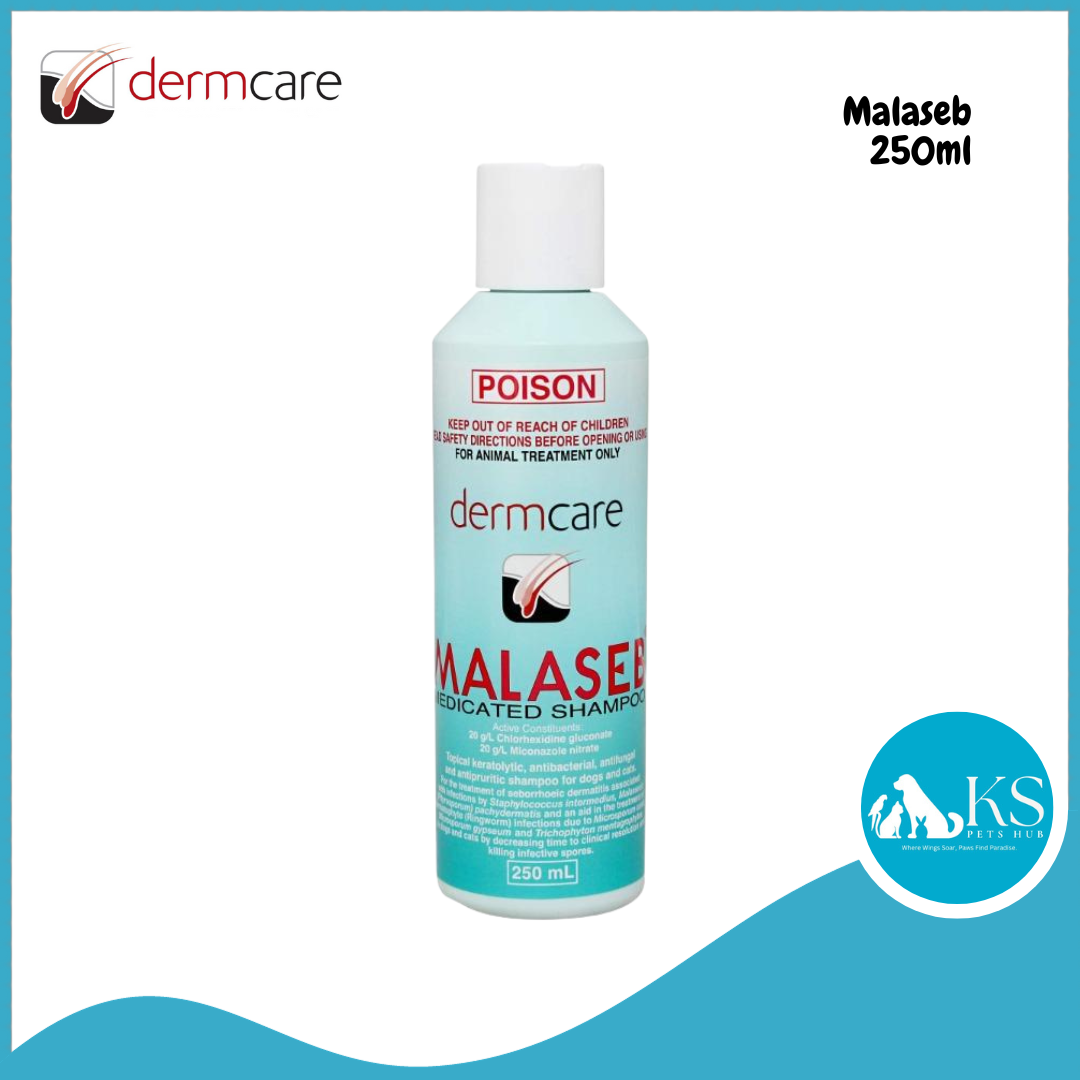 Dermcare Malaseb Medicated Shampoo is registered to treat Seborrhoeic Dermatitis and is an aid in the treatment of Dermatophytosis in pets.Seborrhoeic Dermatitis is a skin infection involving bacteria (Staphylococcus) and yeast (Malassezia). Dermatophytosis is a fungal infection which is more commonly known as “ringworm”.Why does my pet get these infections?It is normal for pets to have low numbers of resident bacteria and yeast on the skin surface. When there is a disruption to the skin's natural ecosystem these bacteria and yeast can overgrow, leading to skin disease.Reasons for disruption to the natural balance of the skin:Allergy, for example to pollens, grasses, food (protein) and fleas.Parasites, such as fleas, mites and lice.Hormonal or endocrine diseasesConformational problems such as deep skin folds - these create a moist environment, which is more favourable for growth of micro-organisms How does Dermcare Malaseb help my pet?Kills the micro-organisms, helping to keep the numbers of yeast and bacteria at manageable levels.Removes excess scale and oils, commonly produced when the skin is infected.Removes allergens such as pollens, which can be present on the coat or skin, causing irritation.How often should I use Dermcare Malaseb on my pet?In the case of Seborrhoeic Dermatitis, Malaseb should be used twice weekly when the infection is active. Once the infection has resolved, it can be used weekly as a maintenance shampoo and preventative.In the case of ringworm, Malaseb should be used twice weekly in conjunction with systemic treatment. Therapy is typically needed for 8 to 12 weeks.Dermatophytosis or "Ringworm"Dermatophytosis is a contagious fungal disease affecting the skin and coat of pets.Dermcare Malaseb kills infective spores on the coat. This helps to prevent the spread of the disease and reduces environmental contamination by reducing shedding of spores from affected animals. Ringworm in cats is usually a generalised skin disease. This means that although you may only see a few localised lesions on the skin, the infective spores may be present over the whole coat meaning that the whole body needs to be washed.The use of Malaseb in conjunction with a systemic antifungal reduces the time to clinical resolution when compared with using a systemic antifungal alone.Malaseb should be used twice weekly during treatment of dermatophytosis. Treatment can take up to 8-12 weeks.It is important to note that young children or people with a compromised immune system may be at a greater risk of contracting the disease. If you have an animal that has been diagnosed with or is suspected to have dermatophytosis, please discuss this with your doctor.