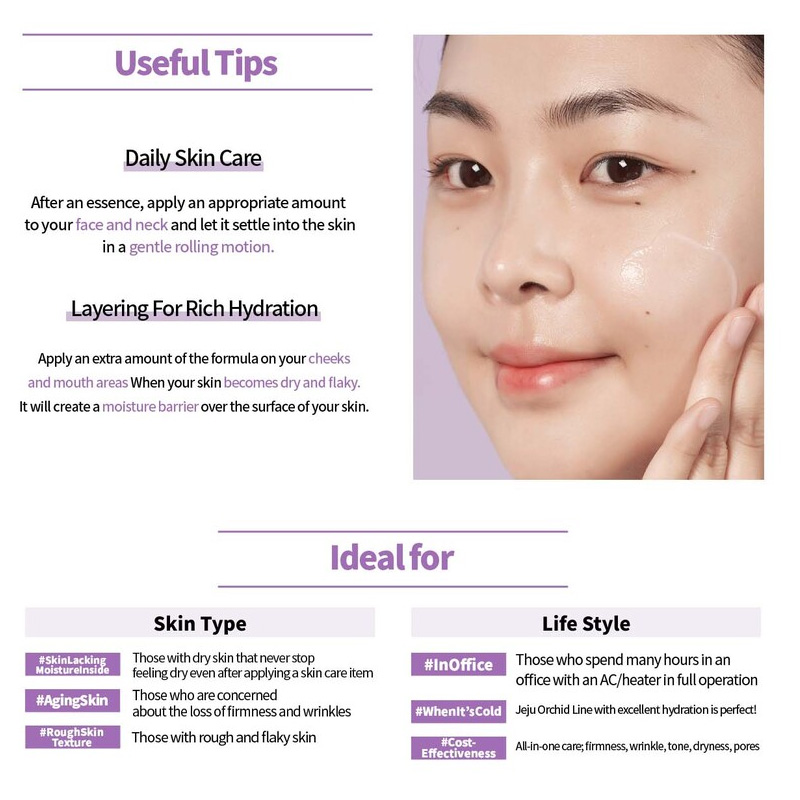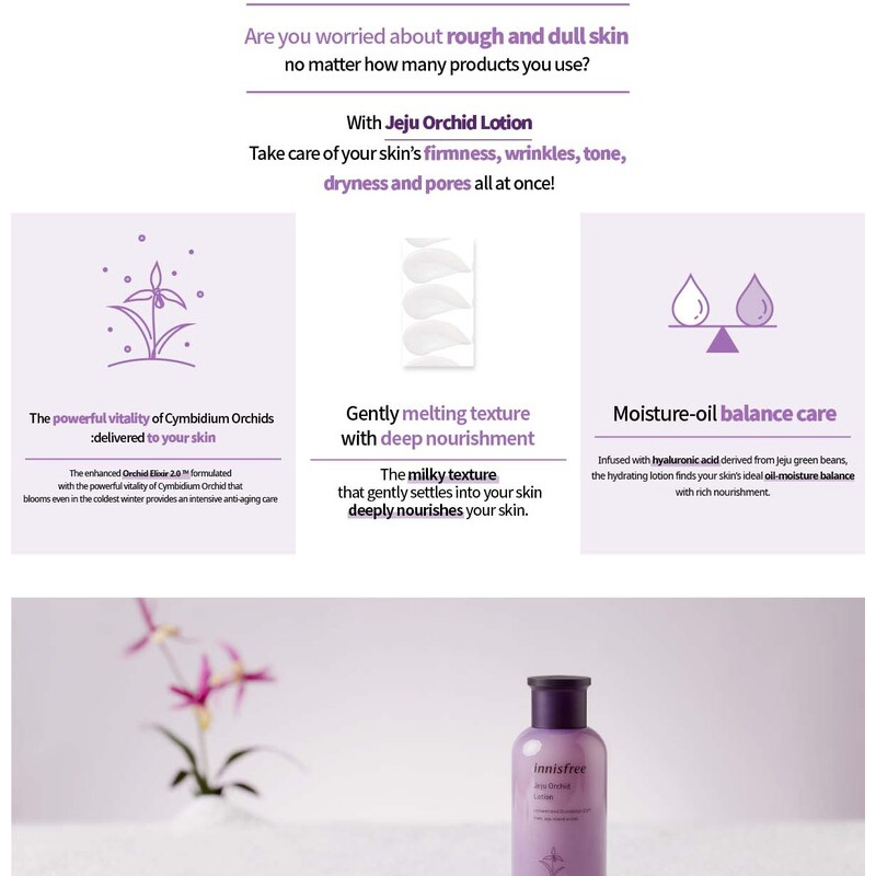| Volume / Weight160ml / 276g Ideal forfor all skin type Expiration Date36 months How to UseApply over face and neck after essence, then gently pat for better absorption. Manufacturer / DistributorCosvision Co., Ltd. / innisfree Corporation Country of ManufactureSouth Korea Ingredients WATER / AQUA / EAU, BUTYLENE GLYCOL, GLYCERIN, HYDROGENATED POLYISOBUTENE, CYCLOPENTASILOXANE, COCOS NUCIFERA (COCONUT) OIL, NIACINAMIDE, CYCLOHEXASILOXANE, CETEARYL ALCOHOL, GLYCERYL STEARATE, PEG-100 STEARATE, PROPANEDIOL, CARBOMER, POLYSILICONE-11, TROMETHAMINE, GLYCERYL CAPRYLATE, FRAGRANCE / PARFUM, DISODIUM EDTA, ETHYLHEXYLGLYCERIN, ADENOSINE, KAOLIN, HYALURONIC ACID, BETAINE, GLUCOSE, ORCHID EXTRACT, TOCOPHEROL MFDS Evaluation of Functional CosmeticsY Cautions for Use (1) For external use only. (2) Avoid direct contact with eyes. (3) If contact occurs rinse thoroughly with water. (4) Discontinue use and consult a doctor if irritation occurs. (5) Keep out of reach of children. Quality Assurance StandardCompensation for defective products is provided according to the criteria notified by the Fair Trade Commission. |
