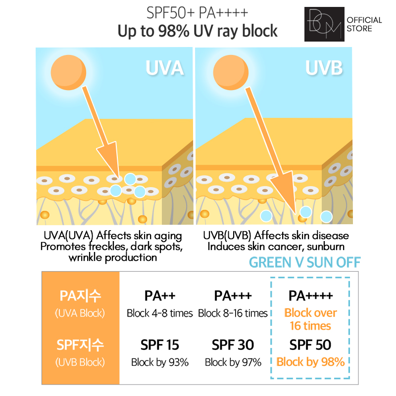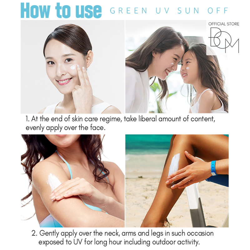 BOM Green UV Sun Off SPF 50+ PA++++ Sun Screen Sun Block SG Official Store
