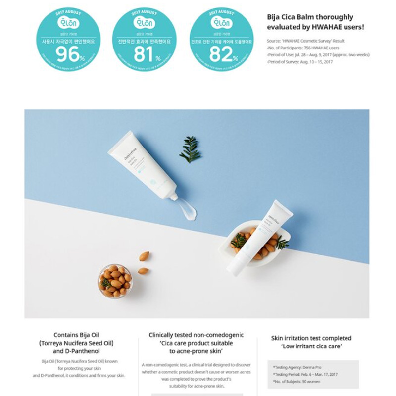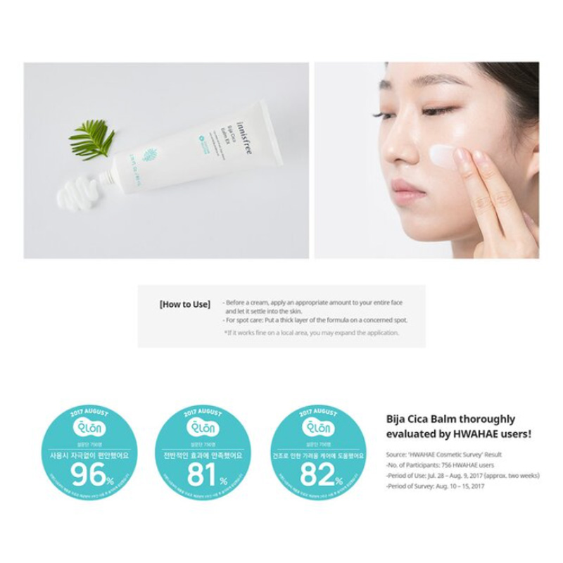 | Volume / Weight40ml / 59g Ideal forFor all skin types Expiration Date36 months How to Use[How to use] Apply evenly over the entire face before using the cream.*For spots : Apply thickly on the affected area. Manufacturer / DistributorCosvision Co., Ltd. / innisfree Corporation Country of ManufactureSouth Korea Ingredients WATER / AQUA / EAU, PROPANEDIOL, GLYCERIN, CYCLOPENTASILOXANE, SQUALANE, CYCLOHEXASILOXANE, CETEARYL ALCOHOL, PANTHENOL, 1,2-HEXANEDIOL, C12-16 ALCOHOLS, POLYSORBATE 60, DIISOSTEARYL MALATE, HYDROXYETHYL ACRYLATE/SODIUM ACRYLOYLDIMETHYL TAURATE COPOLYMER, PALMITIC ACID, ACRYLATES/C10-30 ALKYL ACRYLATE CROSSPOLYMER, HYDROGENATED LECITHIN, TROMETHAMINE, CETEARYL GLUCOSIDE, TORREYA NUCIFERA SEED OIL, DISODIUM EDTA, SORBITAN ISOSTEARATE, MADECASSOSIDE, ASIATICOSIDE, MADECASSIC ACID, ASIATIC ACID, GLUCOSE MFDS Evaluation of Functional CosmeticsN Cautions for Use (1) For external use only. (2) Avoid direct contact with eyes. (3) If contact occurs rinse thoroughly with water. (4) Discontinue use and consult a doctor if irritation occurs. (5) Keep out of reach of children. (6) Always recap after use. (7) Use as quickly as possible after opening. Quality Assurance StandardCompensation for defective products is provided according to the criteria notified by the Fair Trade Commission. |