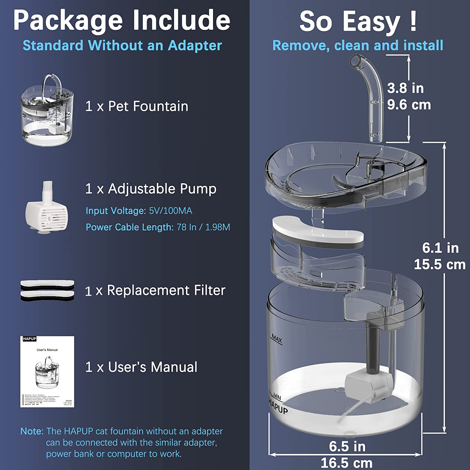 Pet fountain only takes a few minutes to set up and disassemble, which is convenient for cleaning and maintenance.