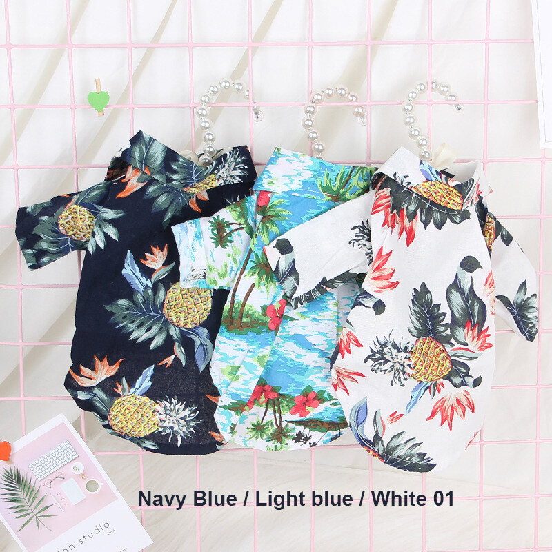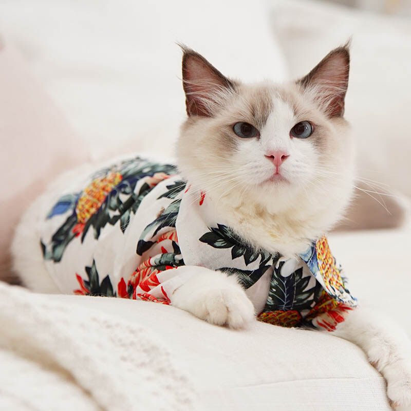 Lovinland Pet Cat Dog Shirts Cotton Summer Beach Clothes Vest Pet Clothing Floral T Shirt Hawaiian For Small Large Dog