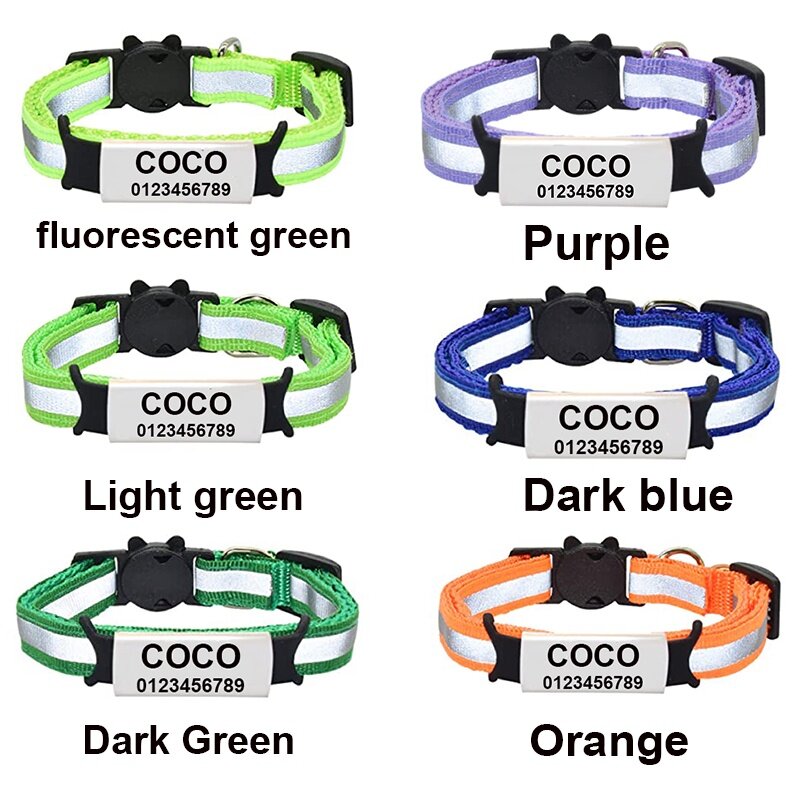 Free Custom ID Name Tag Cat Collar Bell Necklace Safety Reflective Nylon Kitten Cat Collar Personalized Engraved Safte Buckle