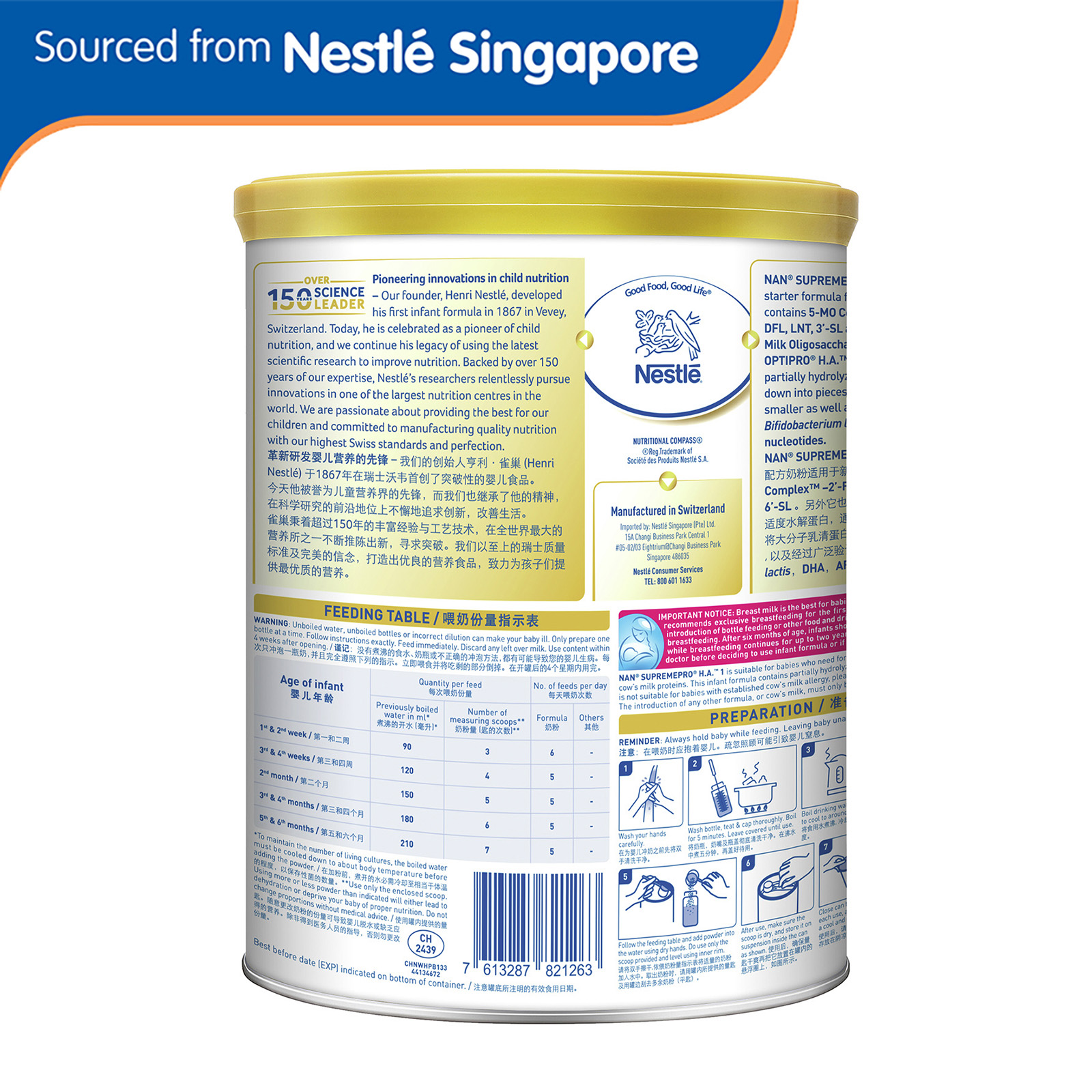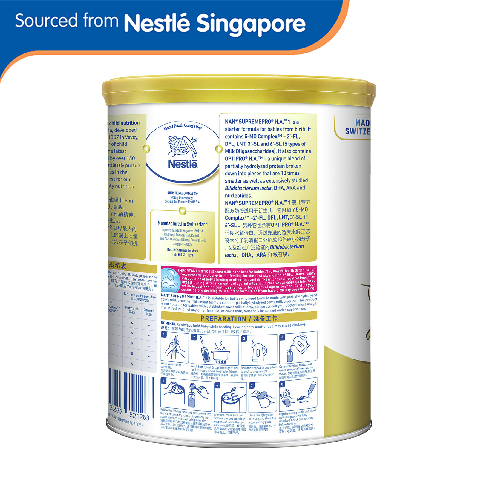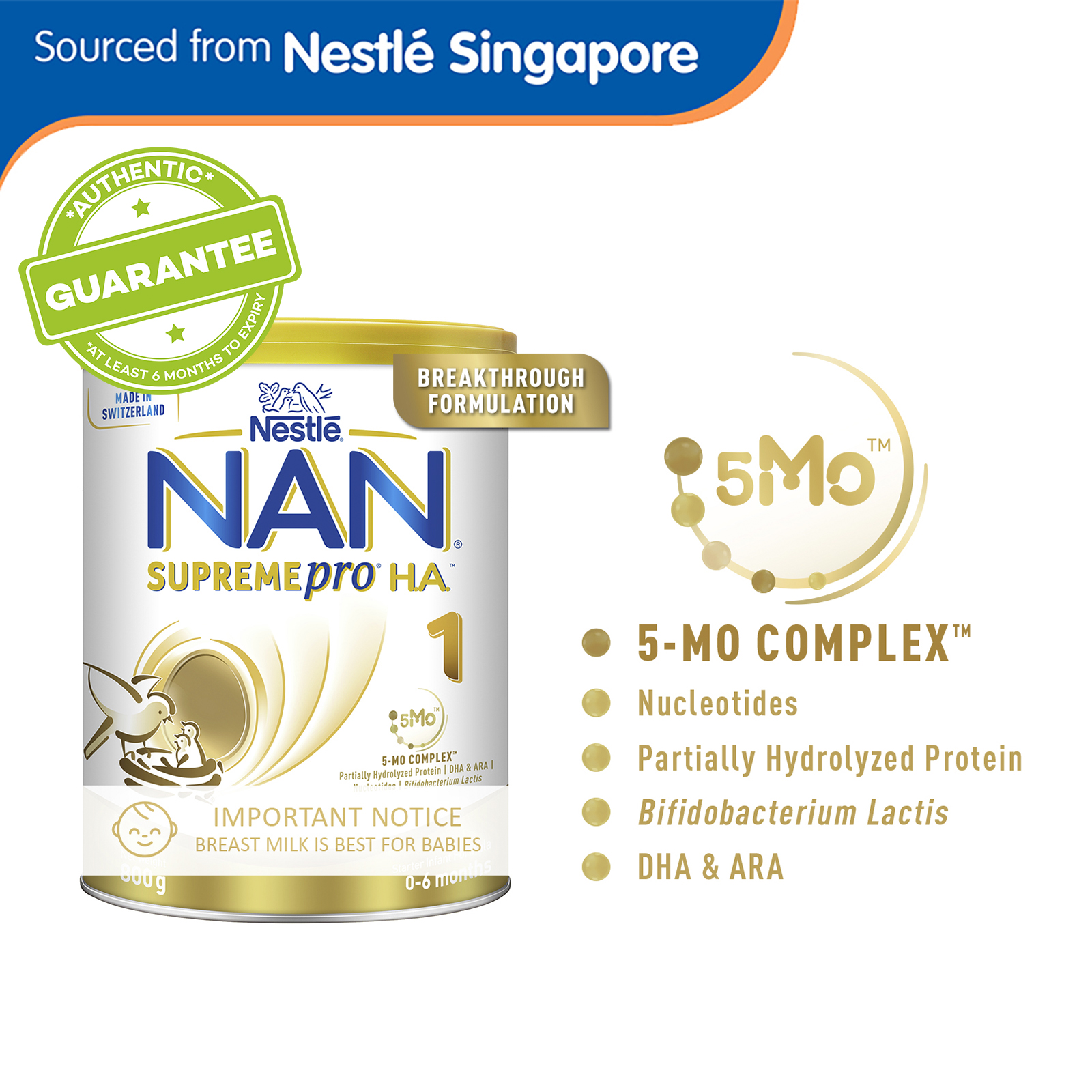 Nestle NAN SupremePro H.A. Stage 1 Starter Infant Formula 800g - From 0-6 Months