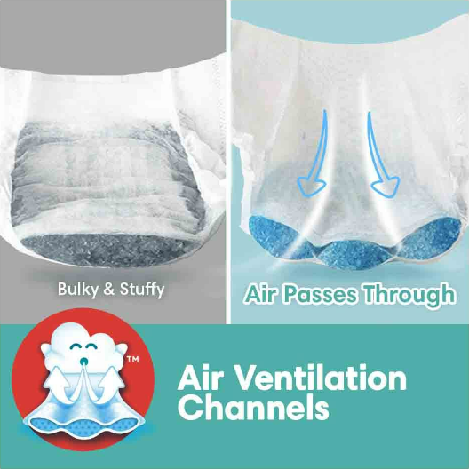 • Breathable dry – allows air flow to skin even when diaper is wet