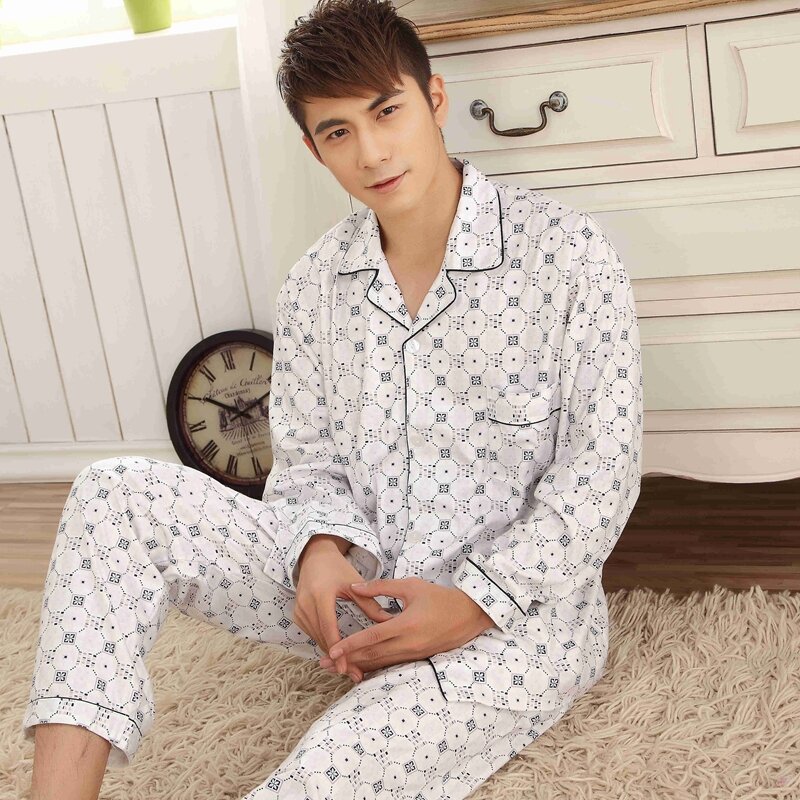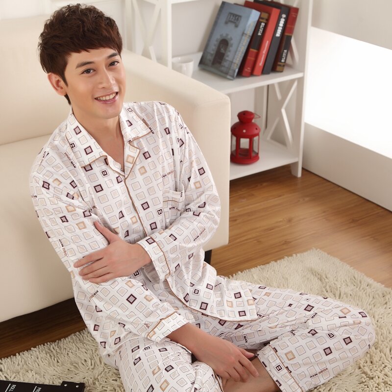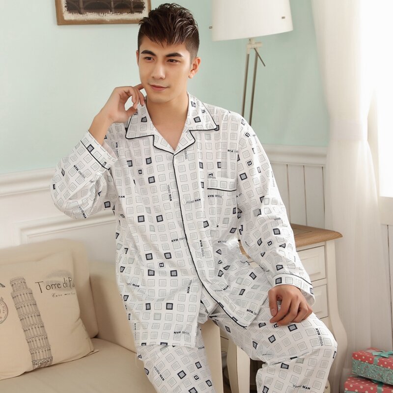 Pajamas Men's Spring and Autumn Middle-Aged and Elderly Cotton Long-Sleeved Men's plus Size Middle-Aged Dad Suit Home Wear Thin Summer