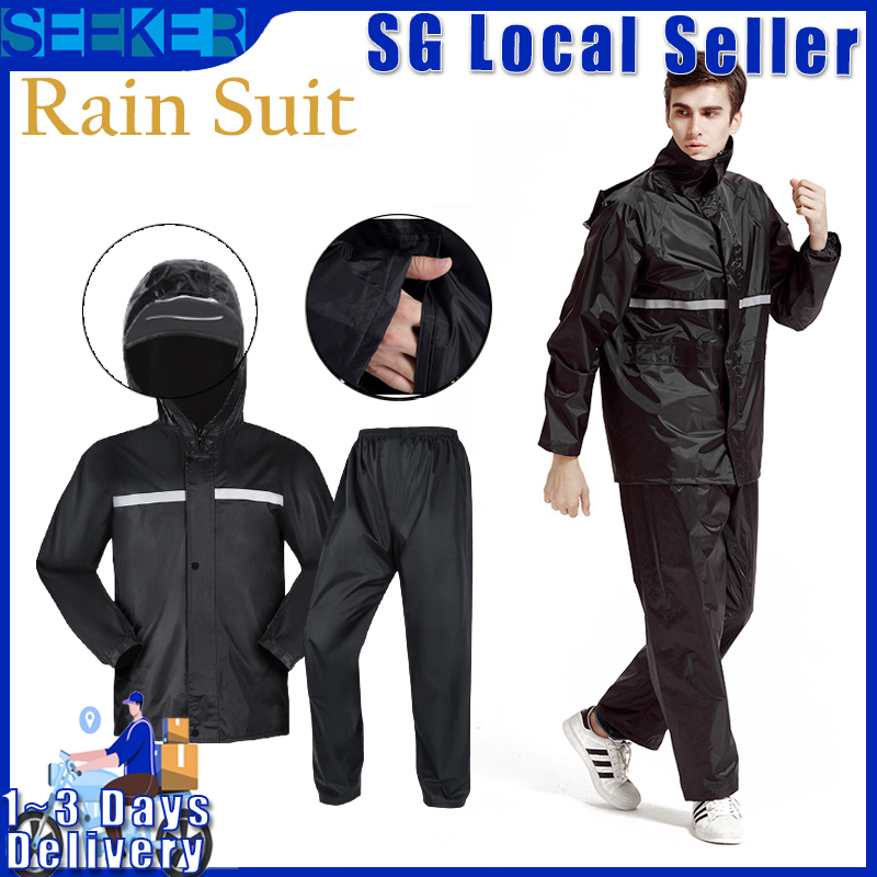 ?? Fast Delivery Split Reflective Tape Cycling Bicycle Travel Hiking Camping Outdoor Adult Raincoat Set Waterproof Breathable Anti-sweat Unisex Cycling Clothing Equipment Reflect Hooded Outdoor Rainwe