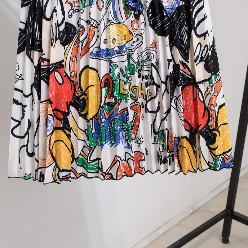 Factory Wholesale Summer Skirt Fashion New Women's Skirt Cartoon Mickey Printing Pleated Skirts