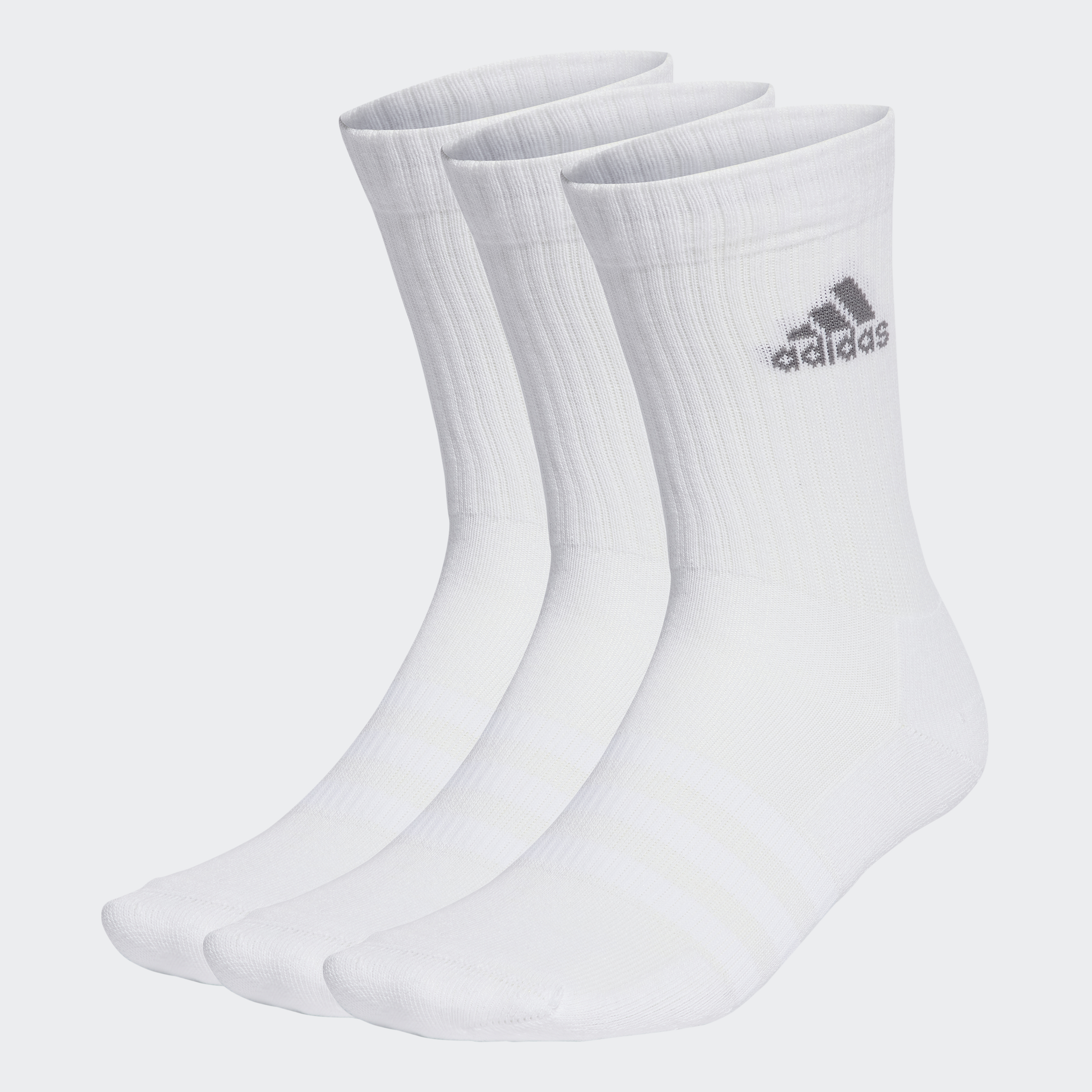 From daily training to the big occasions, adidas crew length socks keep you moving comfortably. They wrap around the arches of your feet and cushion high-pressure areas at the heels and toes. So you stay focused on performance, whether you're running, lifting or playing sports. A minimum of 70% of this product is a blend of recycled and renewable materials.