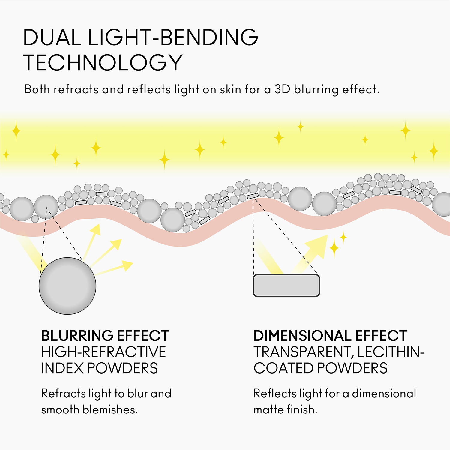 The Studio Fix family expands with a breathable, Pro-inspired setting powder. Our lightest powder ever is ultra-refined to set makeup all day and instantly absorb oil with a photo-friendly, dimensional matte finish. Its Dual Light-Bending Technology uses high-refractive index powders to refract light along with lecithin-coated powders to reflect light on skin for a 3D, blurring effect. Meanwhile, ultra-clear powder particles help the powder stay colour-true all day without looking dull. Includes a plush puff applicator for luxurious application.