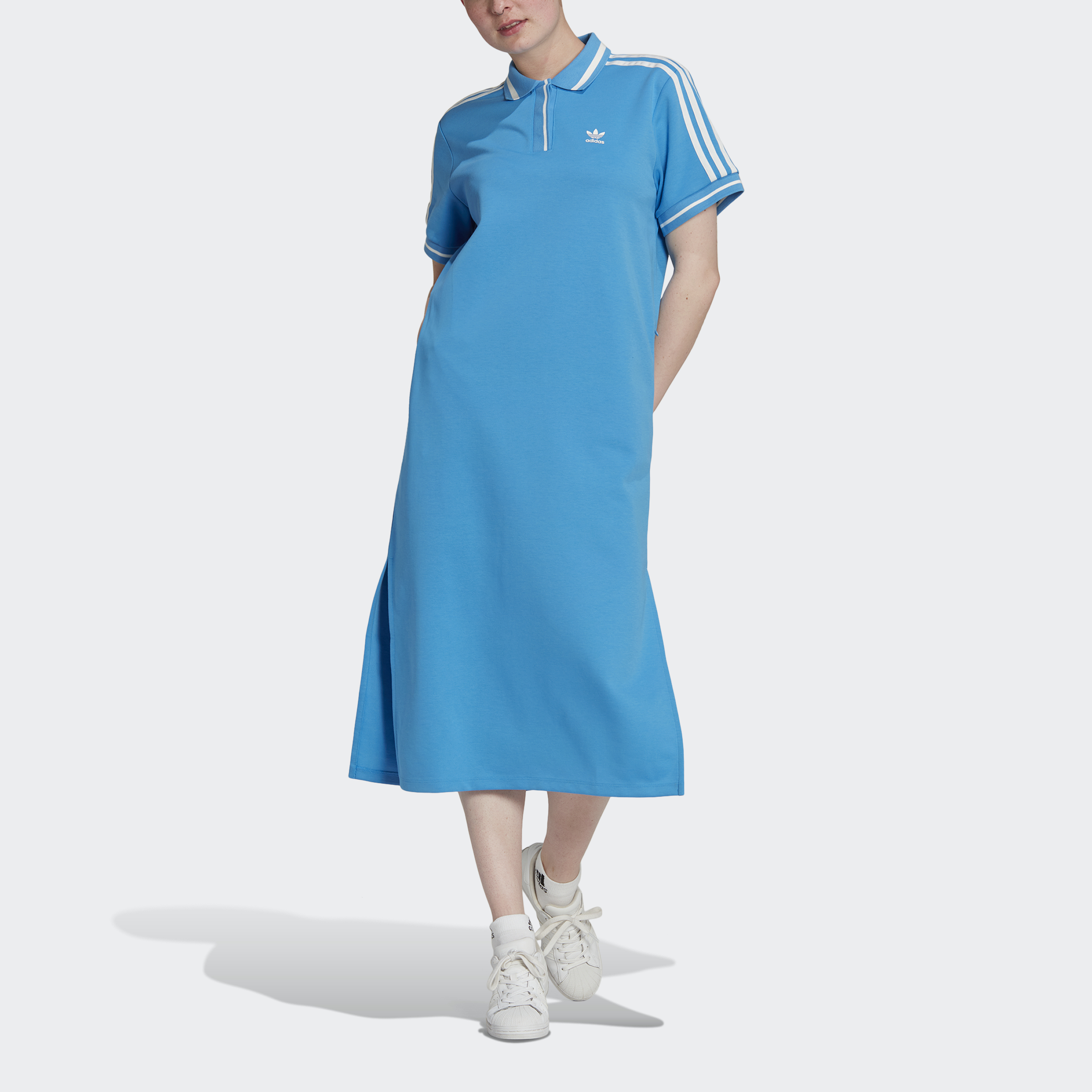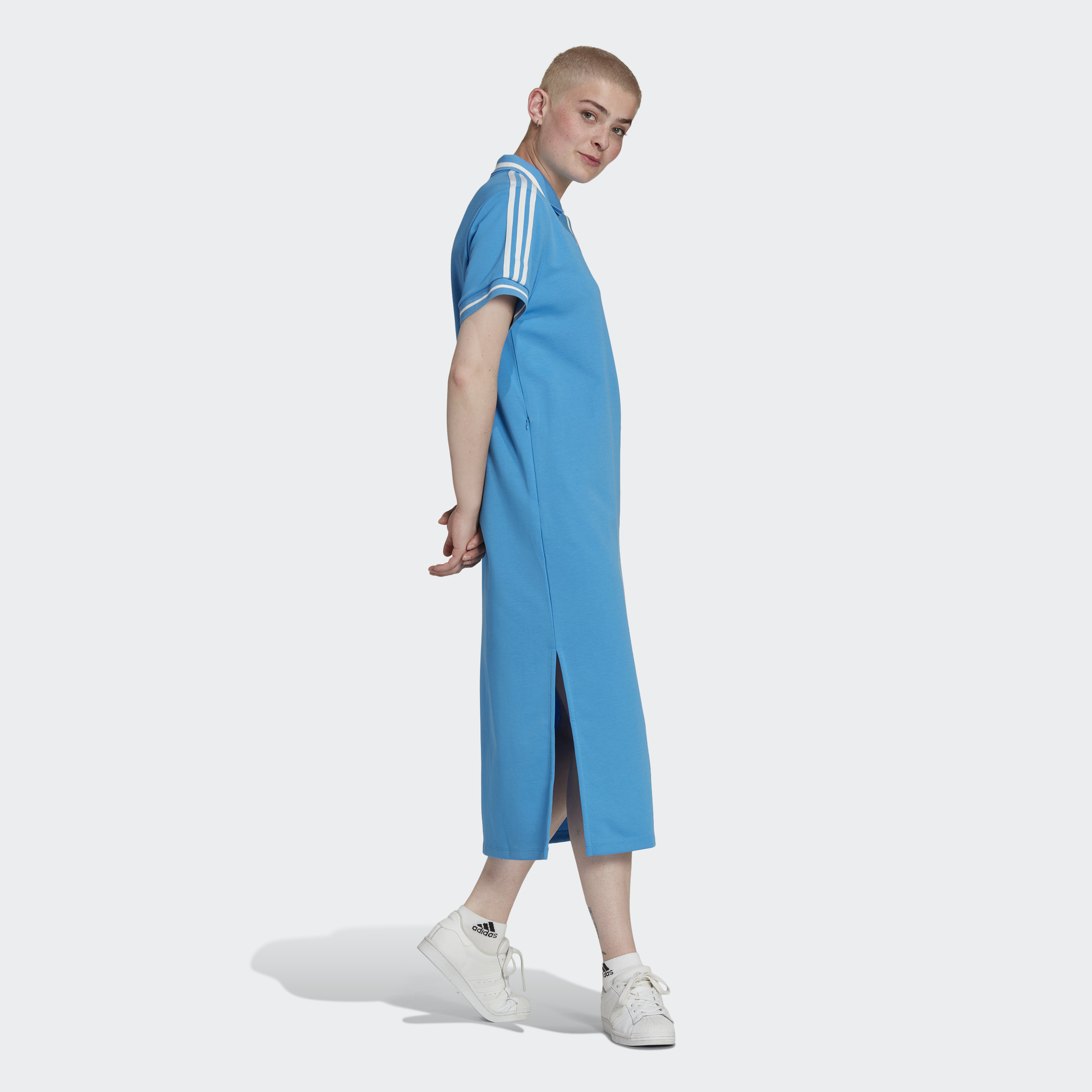Thebe Magugu's approach goes beyond just clothes. The South African fashion brand is a storyteller, using fashion as a medium for expression. In collaboration with Thebe Magugu, this adidas dress brings in a new chapter of adidas Originals. The polo aesthetic and 3-Stripes you've seen before, but this look elongates the expected, and then adds in high side slits to create flow and ease. Made in part with recycled content generated from production waste, e.g. cutting scraps, and post-consumer household waste to avoid the larger environmental impact of producing virgin content.
