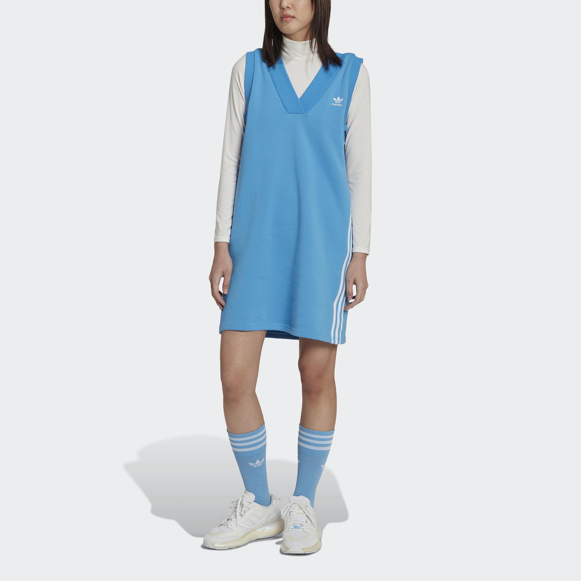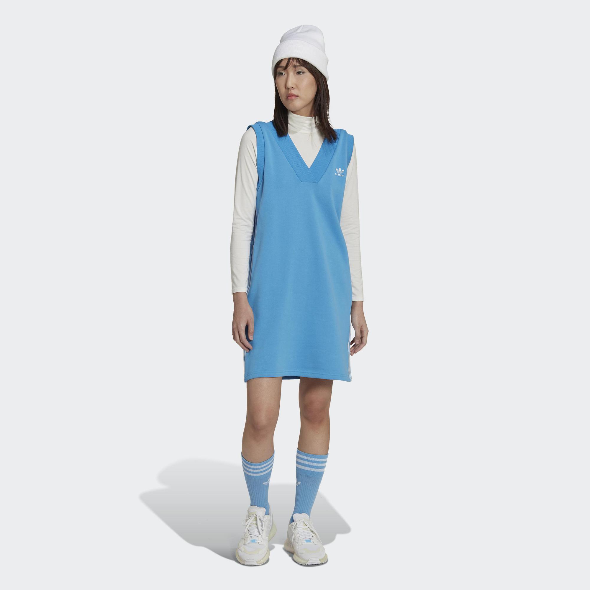 Step back through the decades every time you pull on this adidas vest dress. It's instant retro, with a deep V-neck and iconic 3-Stripes. It's also super-comfortable. Layer it over a comfy tee or collared shirt to play up the throwback vibe, or wear it as a statement on its own.Our cotton products support more sustainable cotton farming.