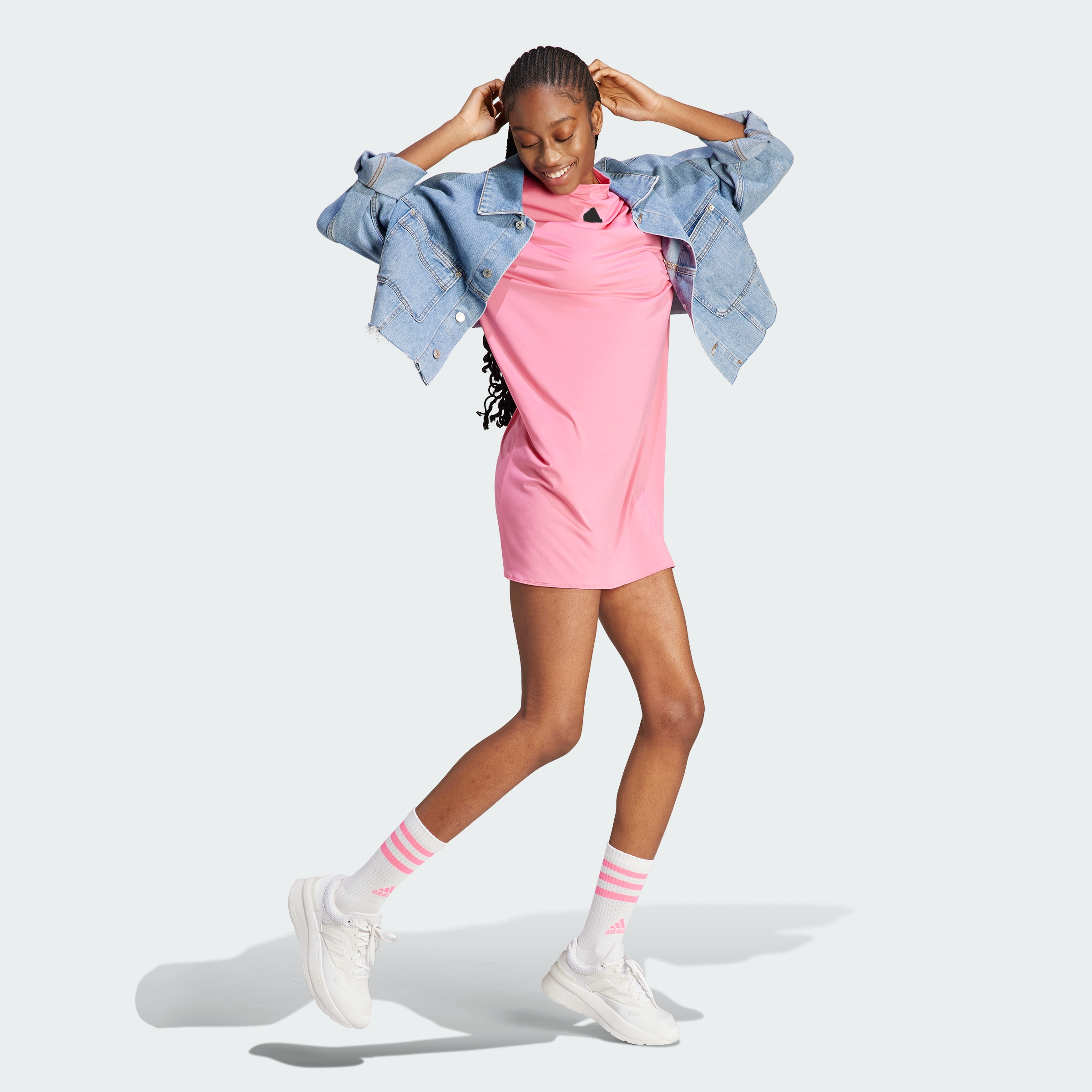 Layer it over swimwear or team it with chunky sneakers. There are so many ways to wear this adidas dress. Light, stretchy and a little sheer, it offers just the right level of coverage for sunny weekends. Wrapping across the back, the iconic 3-Stripes put the adidas stamp on your look. Made with a series of recycled materials, and at least 70% recycled content, this product represents just one of our solutions to help end plastic waste.