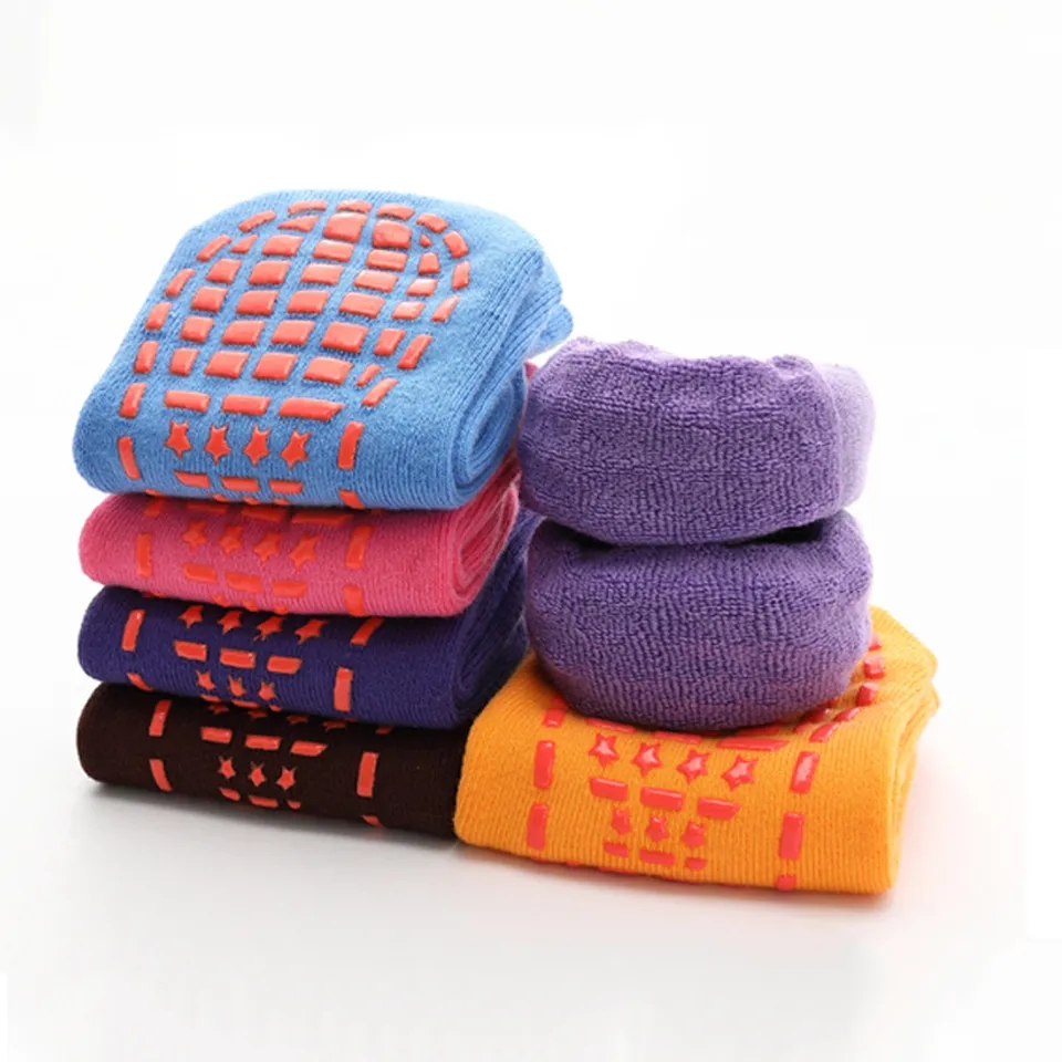 Active socks with non-slip soles are designed to guarantee protection and comfort for the feet. Colorful and fun, they are an essential accessory at home and outdoors.The Trampoline Socks are bottom anti-slip design,allows children to play safely, even in a smooth place like a trampoline or slide.