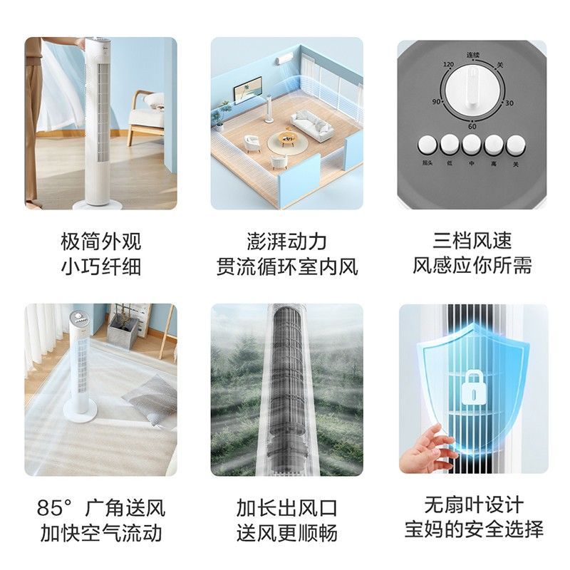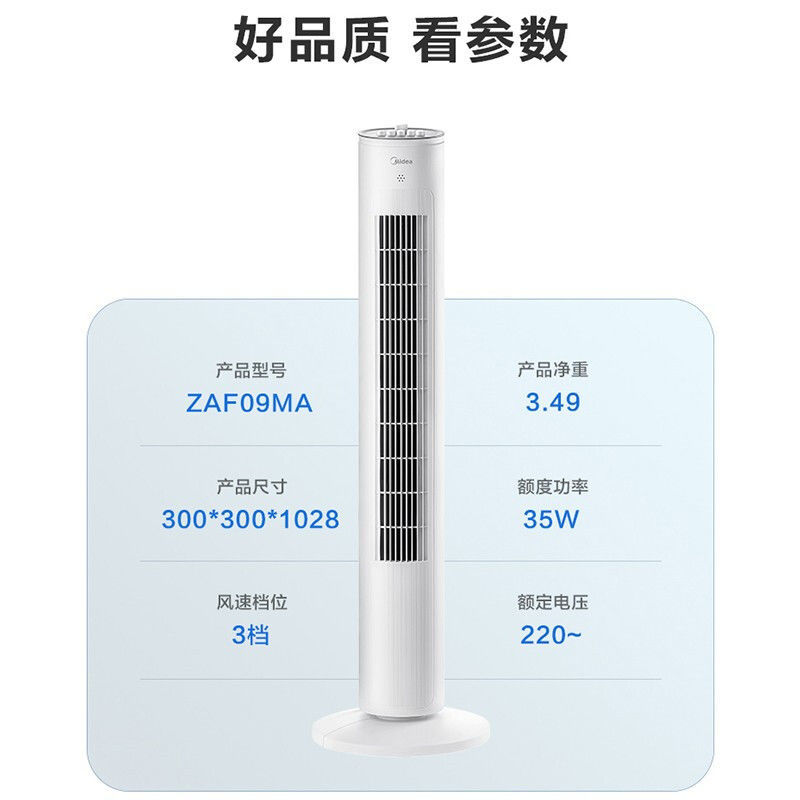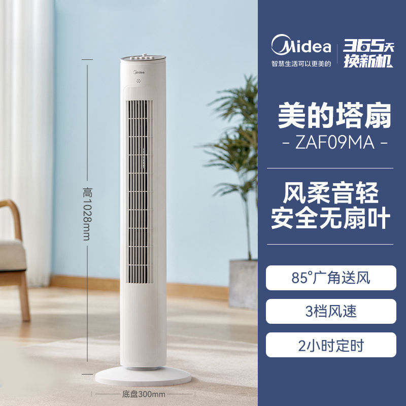 Midea Electric Fan Blade-Free Floor Tower Fan Household Timing Table Vertical Sound Light Dormitory Shaking Head Tower Electric Fan