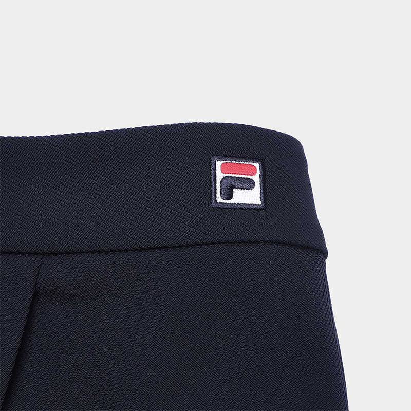 Brand: FILA CORE Product: FILA CORE Women's REVIVED CLASSIC MODERN HERITAGE Skirt in Navy SKU No. F11W331305FNV Color: Navy Gender: Women's Material: 91% Polyester, 9% Spandex This slim-fit skirt will follow your every move. And it is soft to the touch. Freedom of movement, stretch fabric for easy movement
