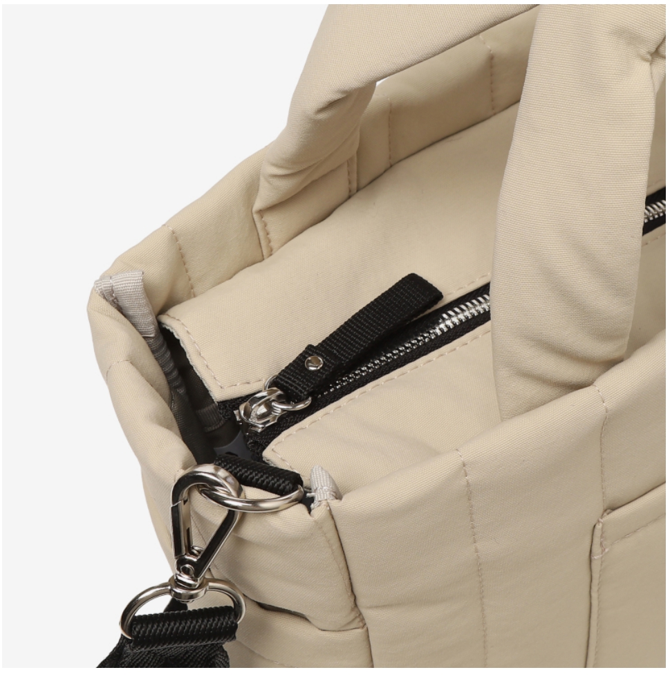 A detachable cross strap is provided so that it can be worn as a tote or cross 2way.