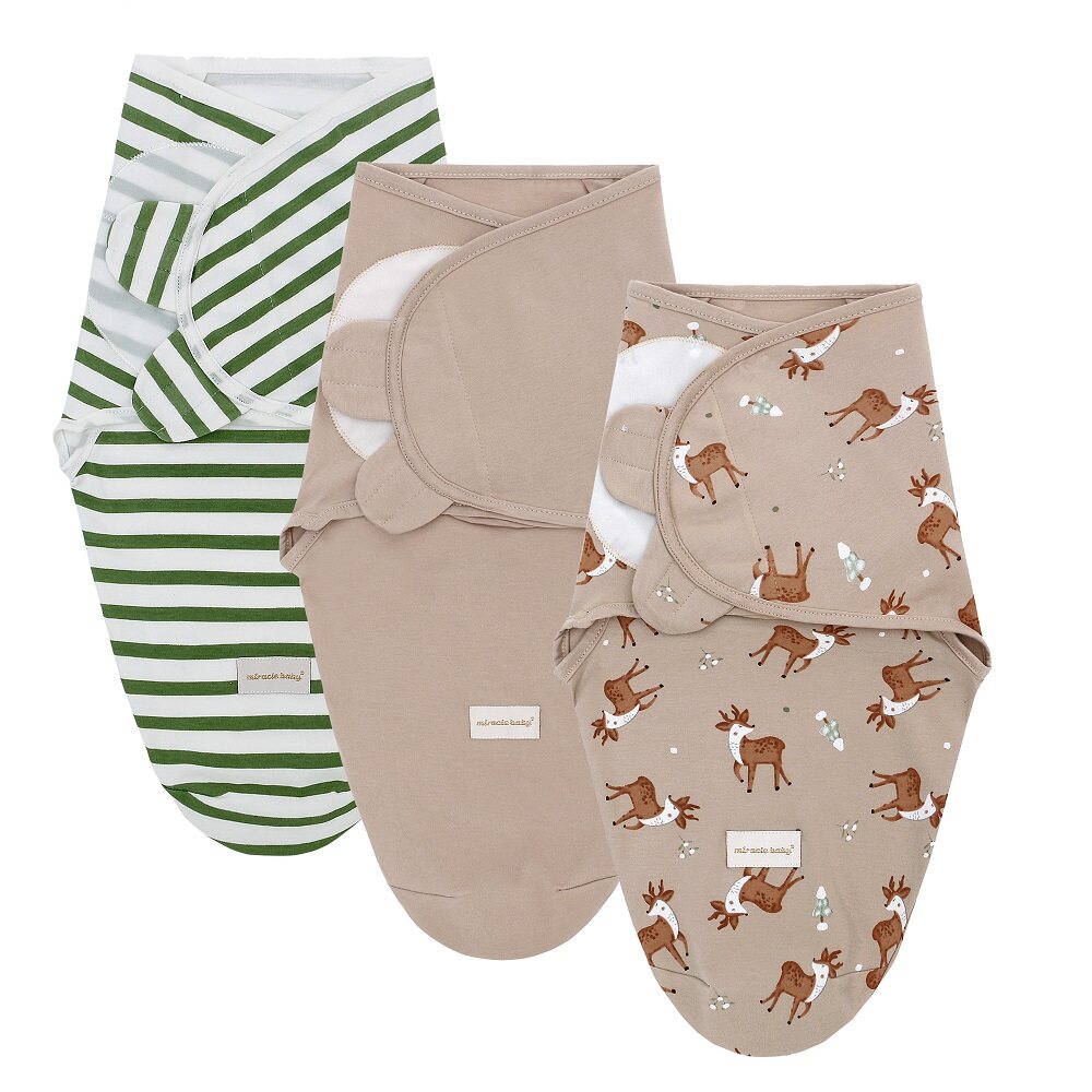 Our velcro swaddling wrap blankets are perfect for babies 7-14 pounds and are adjustable for the perfect fit. This sleep sack set makes the best unisex infant, baby shower gift for boys and girls!