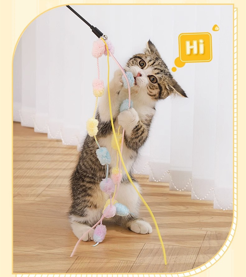Cat Funny Stick Cat Wand Teaser Stick Feather with Samall Bell