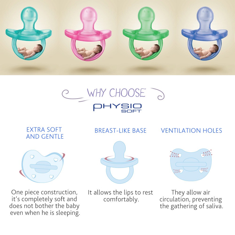 •SILICONE “Mum effect" : The exclusive finish on the teat makes Physio Soft extra velvety and more pleasant.