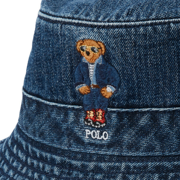 Ralph Lauren's iconic Polo Bear is embroidered at the front of this bucket hat, which is crafted with indigo-dyed denim.