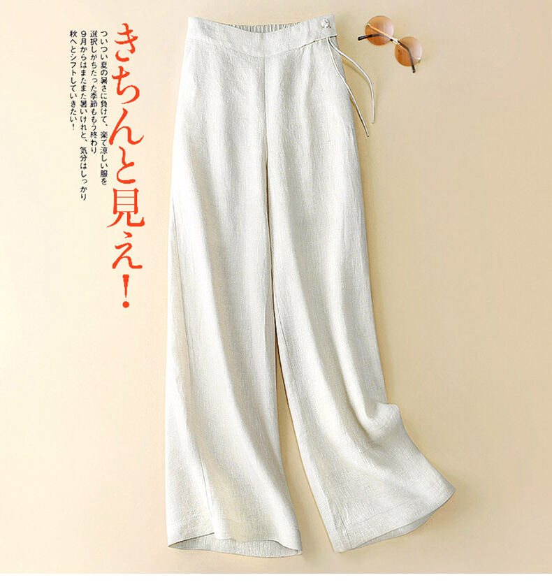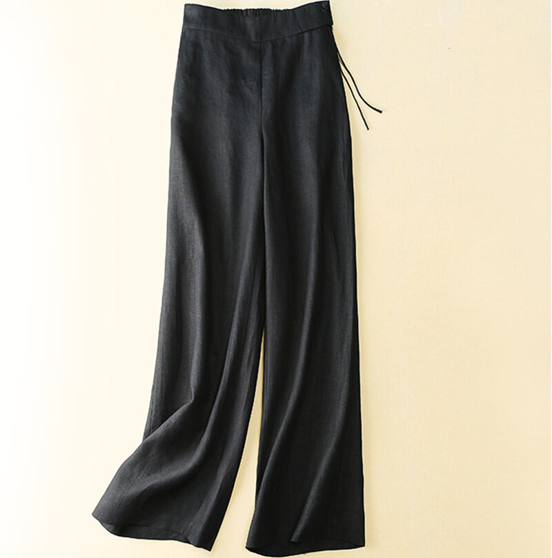 Foreign Trade France Single Women's Clothing Clearance Brand Solid Color Linen Straight Wide Leg Pants Women's Casual Slim Looking Cotton Linen Long Pants