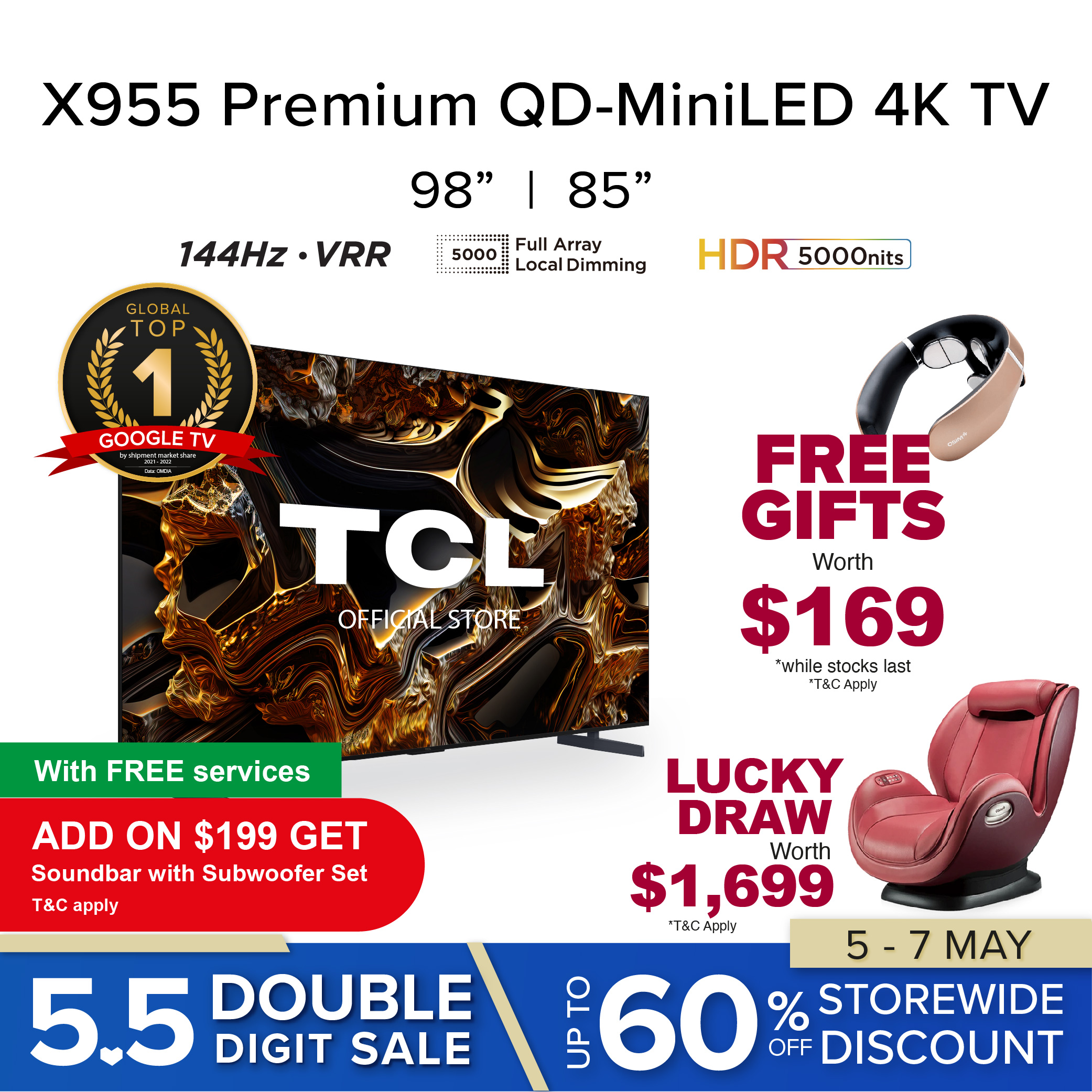 Free OSIM Unek Pilse Tens Neck Massager (worth 169)with every confirmed order of QLED C7 and Mini LED C8, C9 X955 series