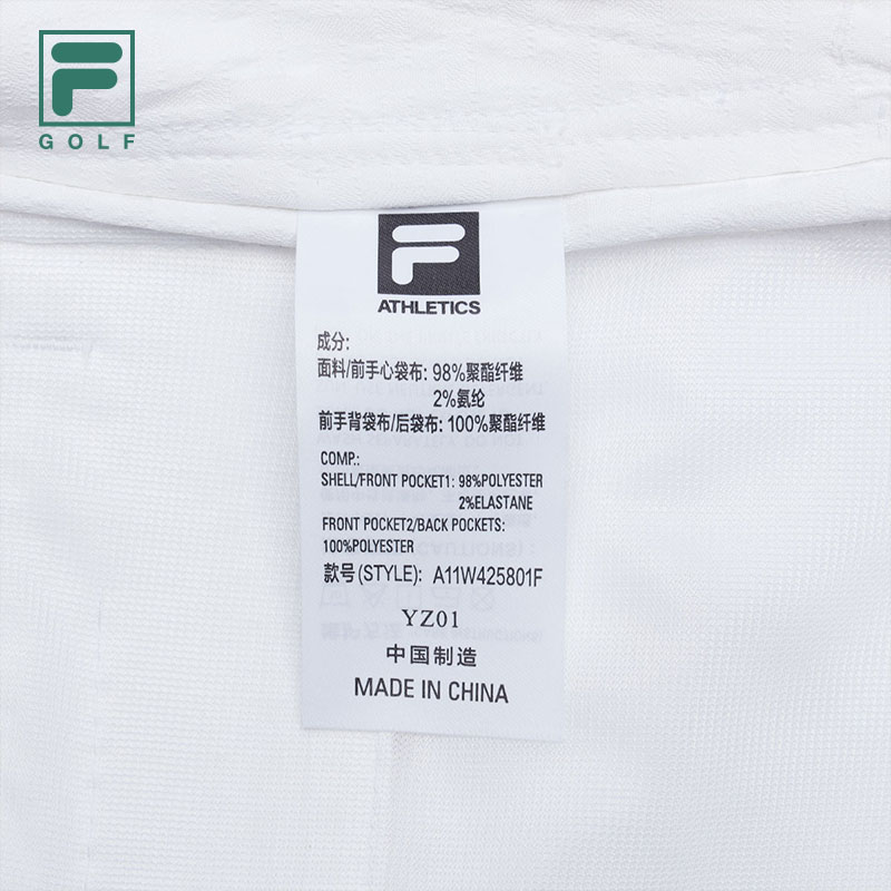 Brand: FILA CORE Product: FILA CORE ATHLETICS GOLF Women Woven Pants in White SKU No. A11W425801FWT Color: White Gender: Women Lightweight, breathable trousers for occasional activities, freedom of movement, Stretch fabric and preformed knees. Lightweight synthetic fabric that wicks the perspiration away from the body