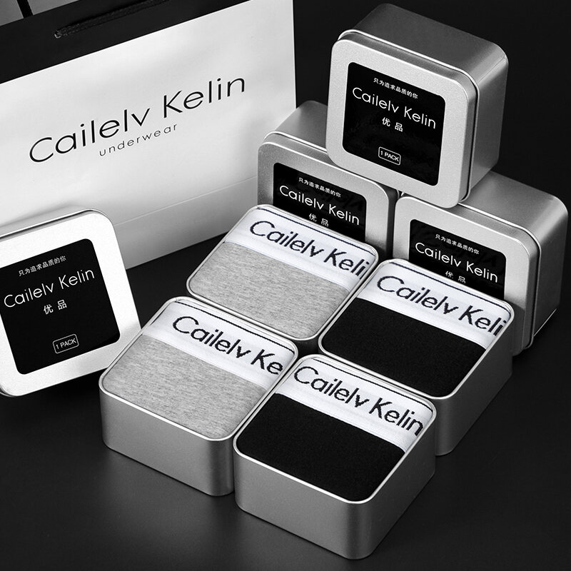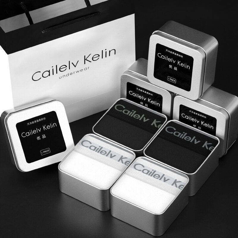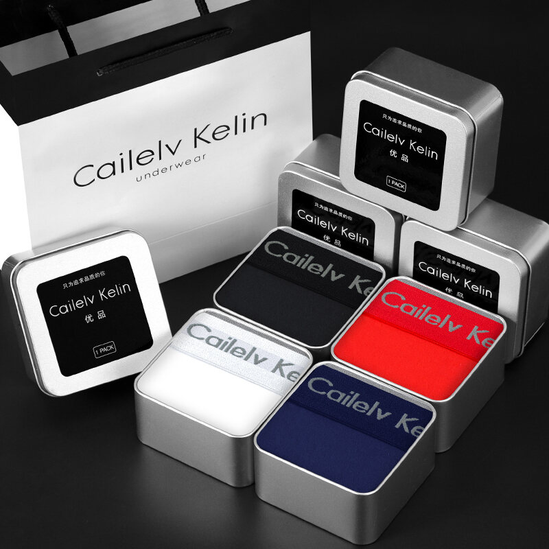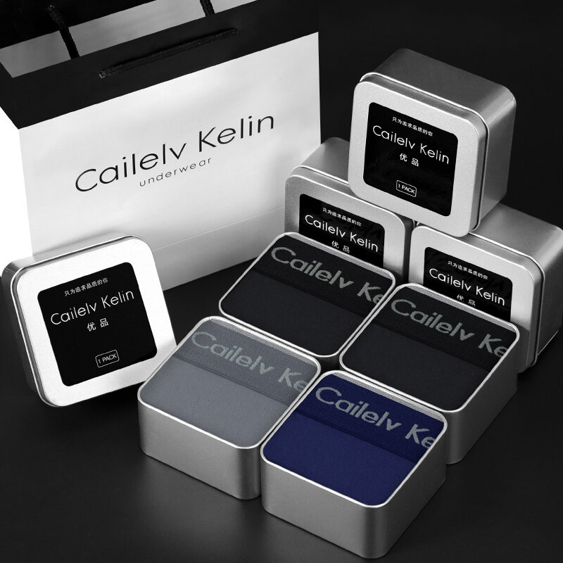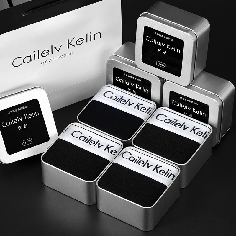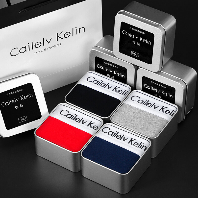 CK & JAV Men Underwear Pure Cotton Boys Style Flat Underwear Boxer Shorts Men's Sports Gift Box Magnetic Therapy Mid-Waist High Elastic