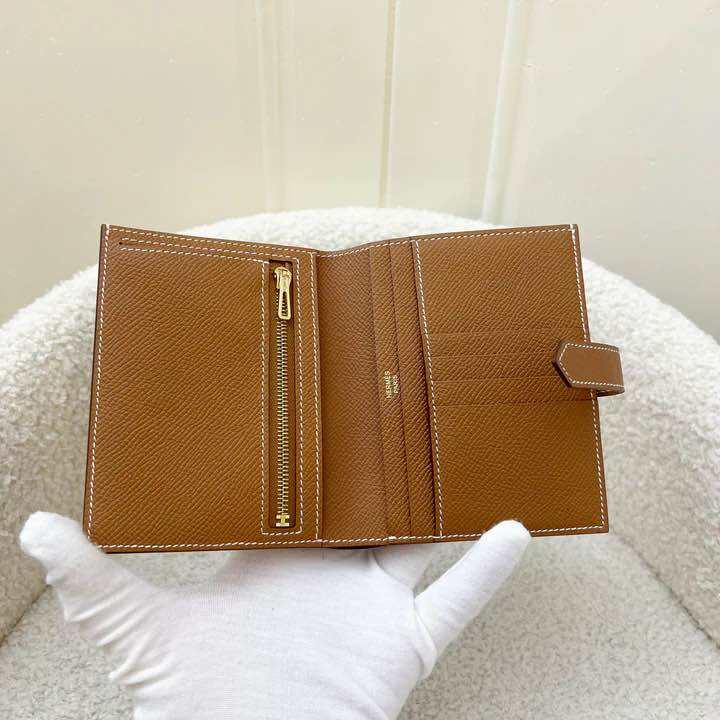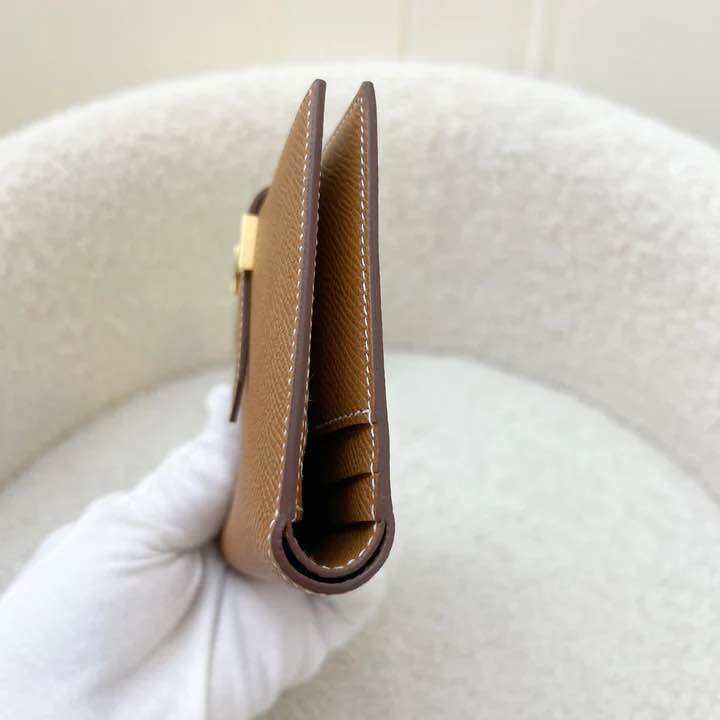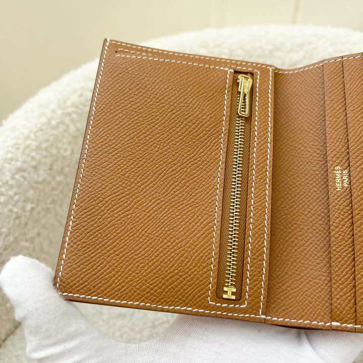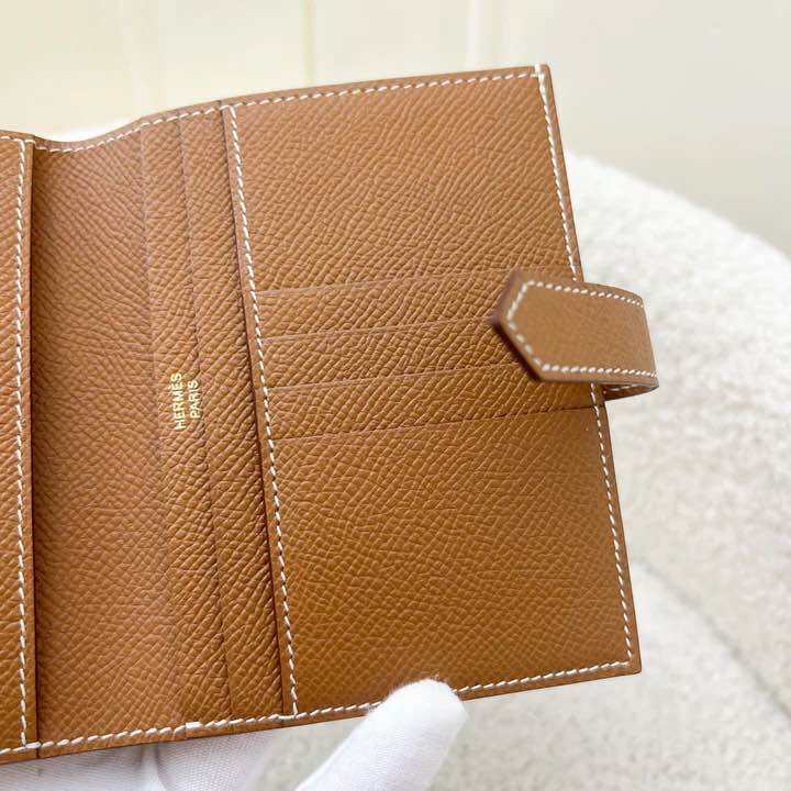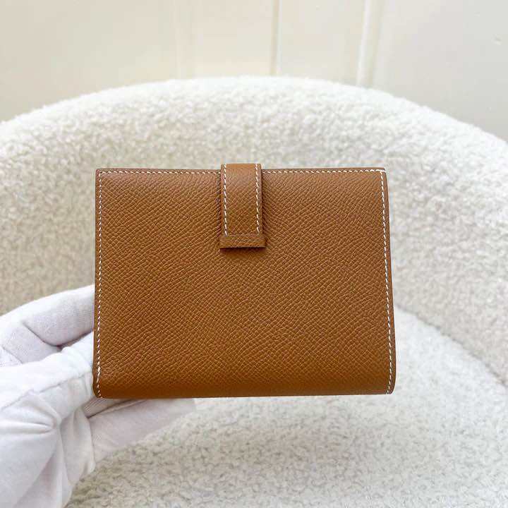 (Pre-loved) Hermes Bearn Compact Bifold Wallet in Gold Epsom GHW