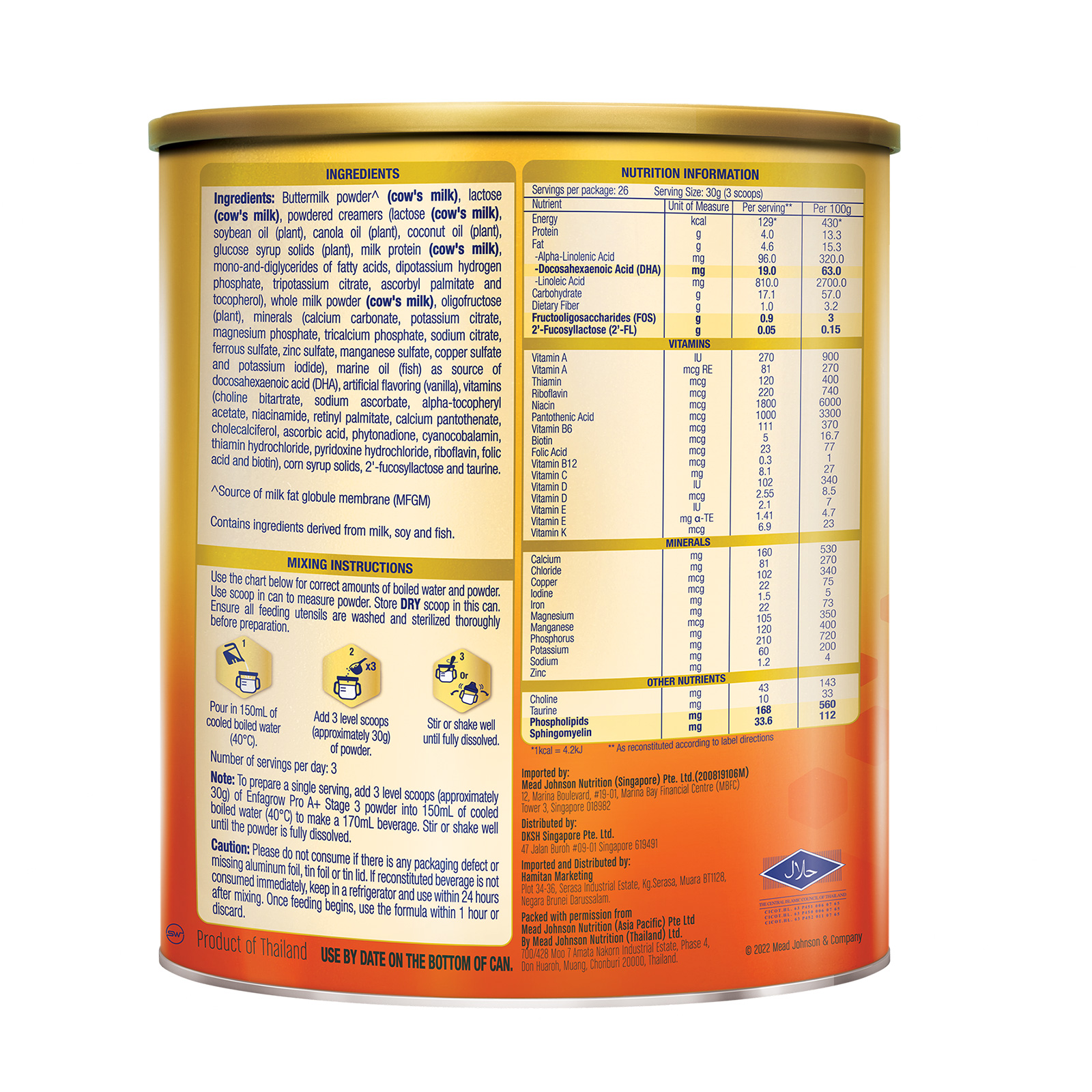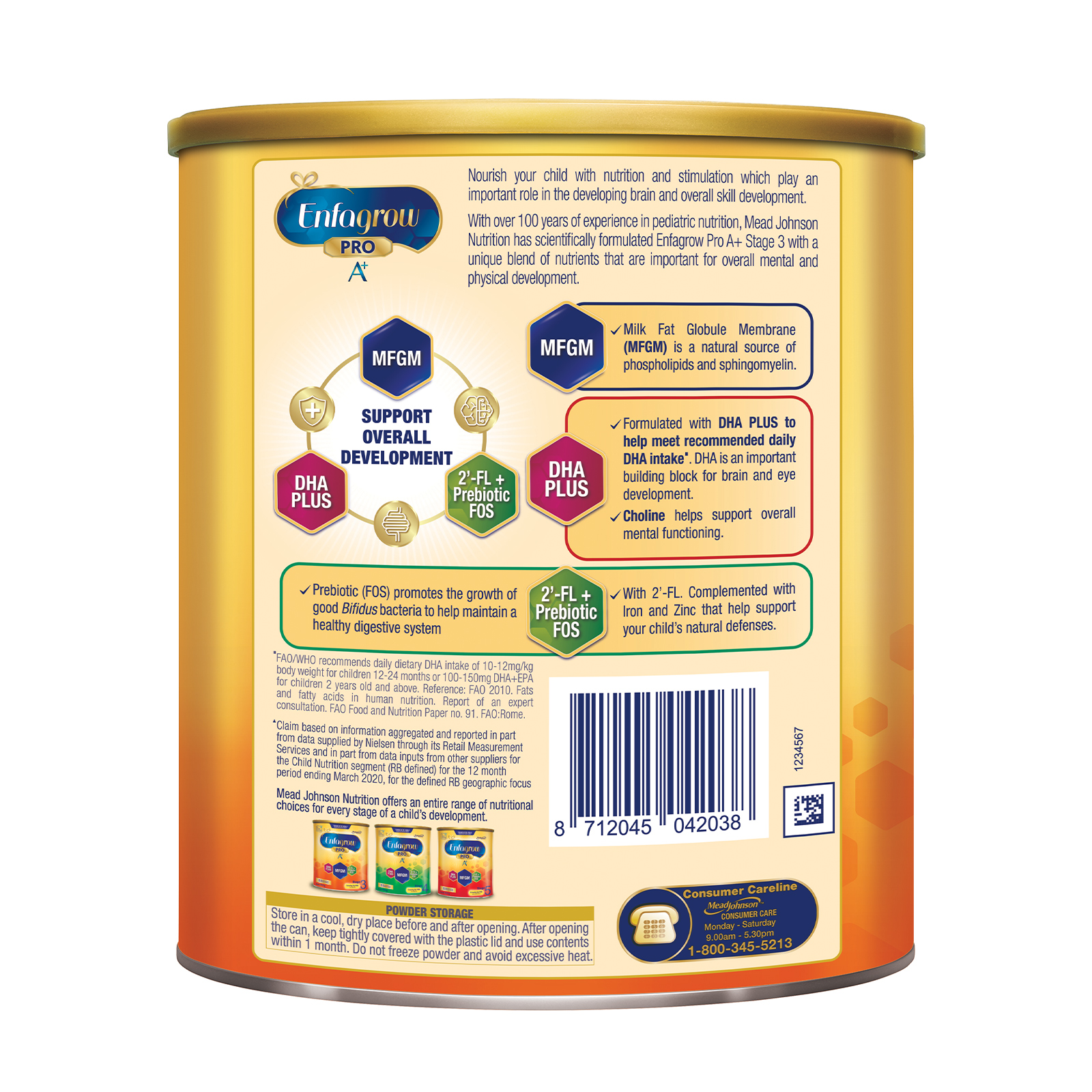 With over 100 years of experience in pediatric nutrition, Mead Johnson Nutrition has scientifically formulated Enfagrow Pro A+ Stage 3 with a unique blend of nutrients that are important for overall mental and physical development.