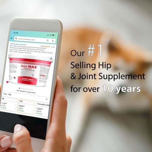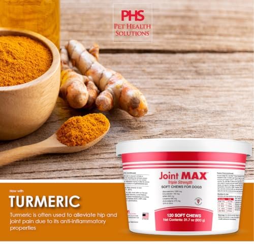 OUR PROPRIETARY BLEND OF INGREDIENTS IS BACKED BY SCIENCE: Joint MAX is a quality hip & joint supplement for dogs at any stage in life. Our soft chews help ease everyday joint stiffness, arthritis pain and support joint structure. Joint MAX offers a convenient and tasty way to provide essential joint care.    ADVANCED CARE FORMULA - Joint MAX TS contains a powerful mobility-supporting formula that includes Glucosamine, Chondroitin, Omega-3, Creatine, EPA + DHA and Turmeric. Our formula helps reduce oxidative stress, targets lubrication, cushioning of tissues and provides arthritis pain relief.    EASY TO USE - Say goodbye to the struggle of giving your dog supplements! Joint MAX supplements have a delicious liver flavor, making them highly palatable and encouraging compliance. Joint MAX has been shown to provide positive joint mobility responses in as little as 10 days.    RELIEF FROM INFLAMMATION - For active dogs or once active dogs that still love to play, Joint MAX Triple Strength uses natural turmeric root to reduce inflammation and relieve joint pain. Your pet will finally rest comfortably after a rough day at the dog park with our super joint enhancer.    PERFECT FOR DOGS AT ANY AGE or SIZE - Younger or senior dogs, large dogs and every dog in-between; prevention for pets that have yet to show signs or dogs that have a difficult time moving. Expect big improvement in their flexibility and mobility.See less           #8,032 in Pet Supplies ( )   #102 in