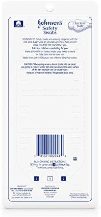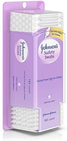 185-count package of cotton ear swabs safely clean those hard-to-reach areas of baby's ear by featuring a unique design that is clinically proven to be safer for children    Johnson's Safety Swabs are made with 100 percent pure, non-chlorine bleached cotton for a safer alternative when compared to traditional swabs, giving you added peace of mind when caring for your baby    Special Ear Safe Bulb design helps prevent cotton swabs from entering too deep into your baby's ear and provides a gentle clean for those hard-to-reach areas so that they are safe for your child and comforting for you    Not just for babies and children, these cotton swabs are also suitable for use by adults and can be used to clean ears as well as when applying ointment and makeup    When using cotton ear swabs, gently remove visible dirt and wax around the outer surface of the ear for a gentle and dry clean for your baby and you