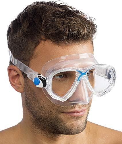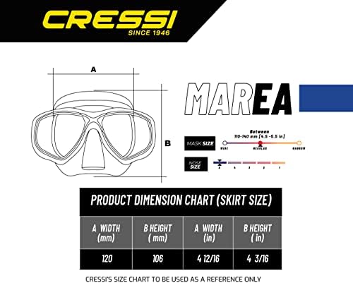 Designed for adult divers, the Marea mask gives an exceptionally wide field of view. Ideal for scuba diving and snorkeling.    The Marea has separate lenses, a skirt edge that adapts to most faces and a small inner volume, perfect for scuba divers, even snorkelers. The lenses are made in tempered glass and treated with an anti-fog solution.    The mask is equipped with Cressi's Micrometric Easy Adjust Buckles and has a wide silicone strap designed for even dispersion of pressure for increased fit and comfort.    It features an Easy-to-Reach one-hand nose pocket for ear equalization, which can be utilized even when wearing thick gloves.    The Marea is designed and manufactured in Italy by Cressi, an Italian brand pioneer in scuba diving, snorkeling , and swimming equipment since 1946.