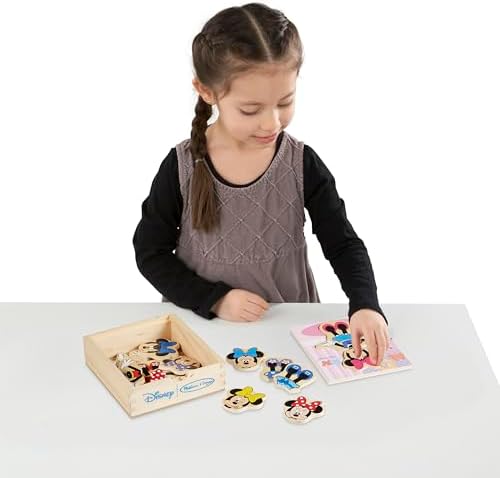 MINNIE MOUSE DRESS-UP SET: Melissa & Doug Disney Minnie Mouse Mix and Match Dress-Up Wooden Play Set includes mix-and-match pieces to create and change looks. MIX-AND-MATCH OUTFITS: Mix-and-match 18 wooden pieces to create fabulous fashions Minnie would be proud to wear. GREAT FOR TRAVEL: Comes in an easy-to-carry storage tray to bring the creative expression and imaginative thinking on-the-go. GREAT GIFT FOR AGES 3 TO 6: Makes an exceptional gift for kids ages 3 to 6. Add the Melissa & Doug Disney Sleeping Beauty and Snow White Magnetic Dress-Up Wooden Doll Pretend Play Set to round out the pretend play and screen-free play experience. “THE GOLD STANDARD IN CHILDHOOD PLAY”: For more than 30 years, Melissa & Doug has created beautifully designed imagination- and creativity-sparking products that NBC News called “the gold standard in early childhood play.”