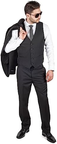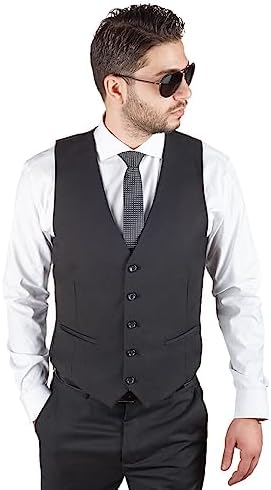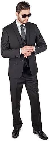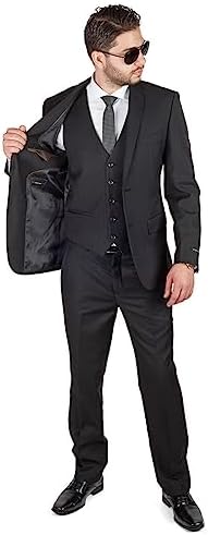 JACKET: Single Breast, 2 Button, Notch Lapel, Double Vents, Fully Lined PANTS: Flat Front Pants, Zippered Fly With Buttoned Waist Tab, 2 Angled Front Pant Pockets, 2 Back Pockets, Unhemmed, Extra Material For Custom Tailoring, Waist Has 2 Inches Room To Let Out. 6 Inch Drop: Waist Inches is Always 6 Less Than Shoulder Size VEST: 5 BUTTON V NECK ADJUSTABLE BACK STRAP INSEAM: Open (Unhemmed For Altering Ease) FREE Solid Black Slim AZAR MAN Tie Included         #1,913,602 in Clothing, Shoes & Jewelry ( )   #1,369 in